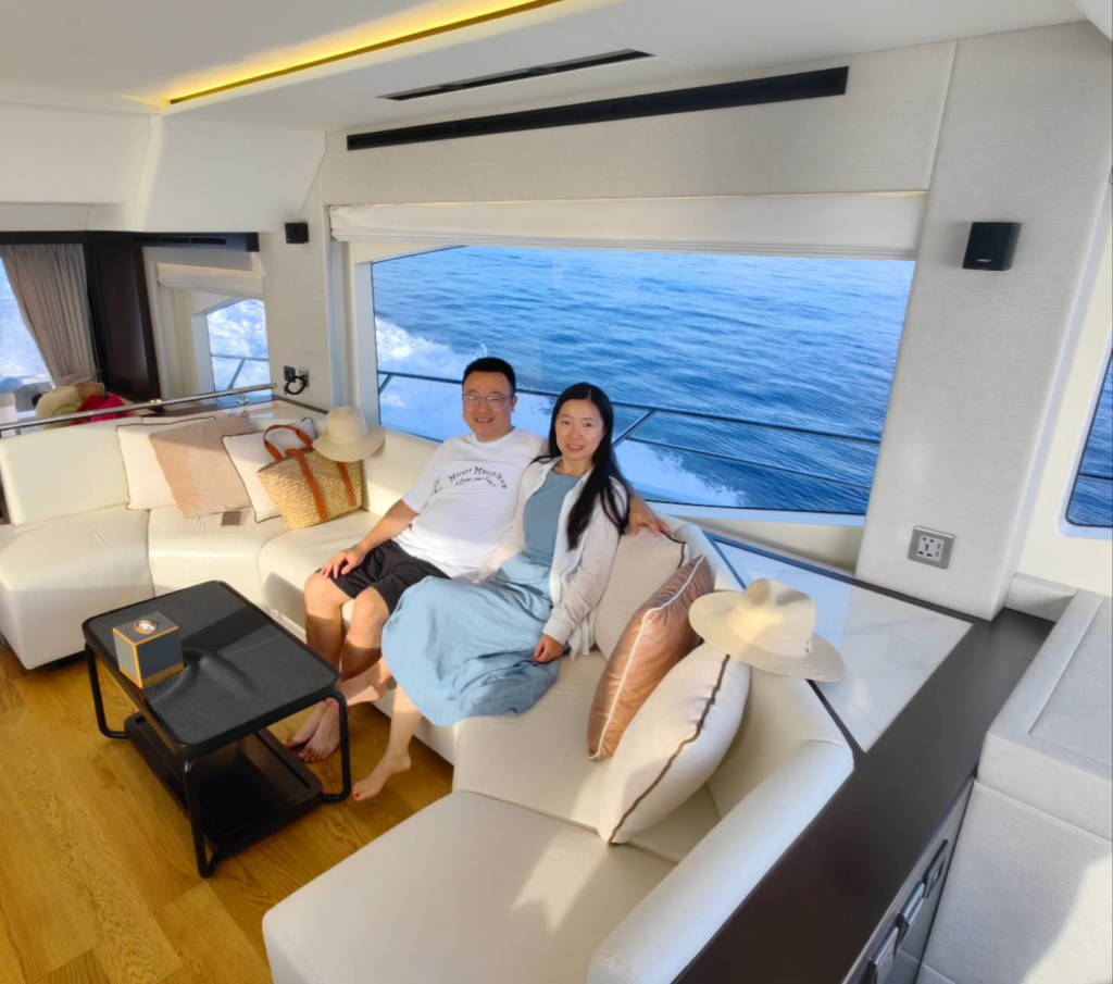 今天 ip马尔代夫 又要假装有钱人了。 管家给的惊喜~~~这一趟安排的豪华游艇只有我和老婆两个乘客,体验了一下私人游艇的感觉。 非常不错,船很高视野很好,配备了一个美女服务员,可乐加冰管够,哈哈。老婆可以换一下了
