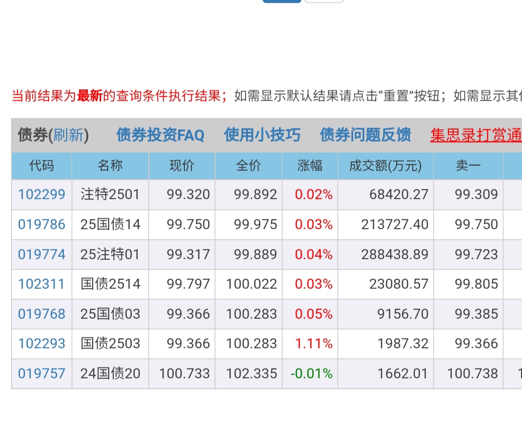 如下图,第一行与第三行其实是一个国债,第一行价格99.32的收益率肯定比比第三行99.317的收益率要低,但是排序反而高。经过观察,这种现象比较常见,造成这种排序混乱的情况,主要原因的收益率只取小数点二位,当小数点后第二位数字相同时,排序就混乱,所以建议收益率改为小数点后三位,这样就会正常了。