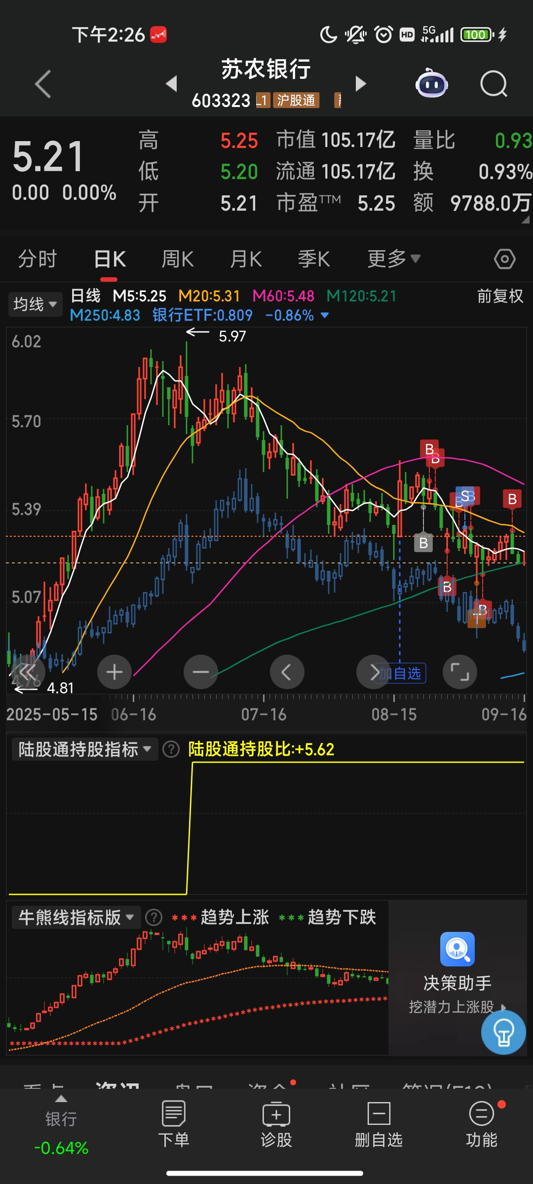 讲个笑话,价值投资, 15年 年底收盘价 4.52 现在 5.72 北京银行 , 涨了 26% ,乘以 0.1 次方, 得出每年收益率 2.3% 这收益率感人啊。 15年存 大额存单都比这个投资强吧。 银行股,价值投资, 就是个笑话, 不是谁都可以运气好买到农行的。 其他银行也是银行股,算算概率, 还不如随便买个股票都比他强吧。那你要13年年底买呢0.6,现在5.72涨了900%