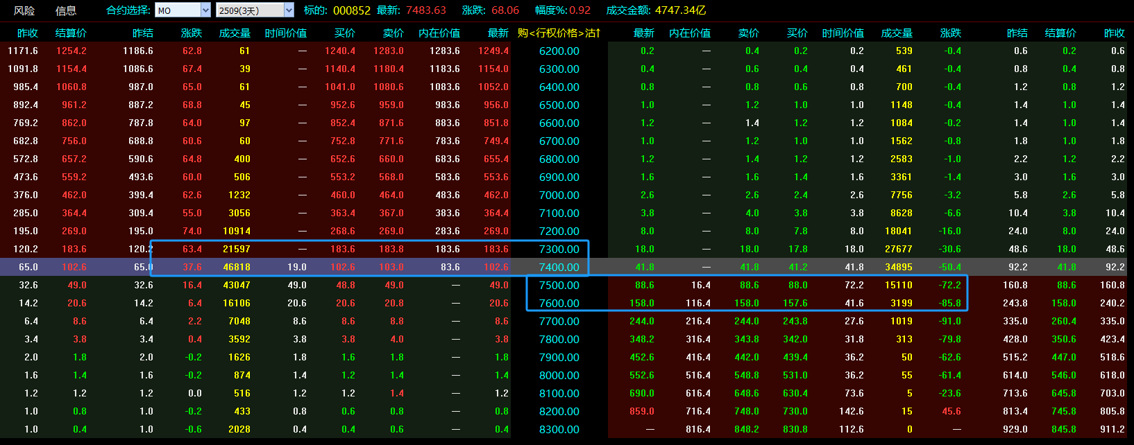 我买IM2509购7300 现价183.6 卖购7400 现价102.6 还有三天到期 如果到期了指数高于7400我赚1900元 指数低于7400我最大亏损8100元