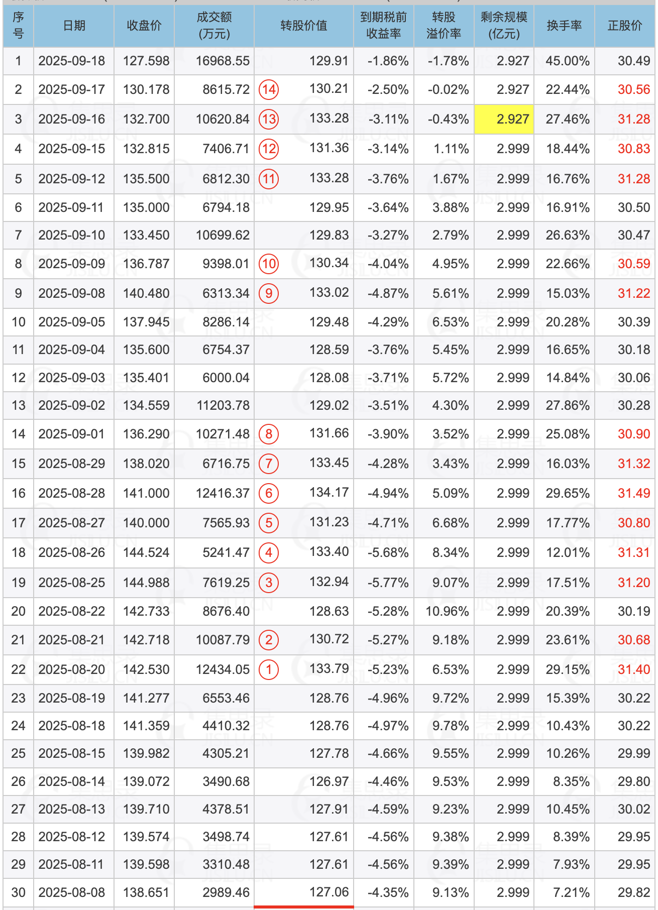 所以今天这种case,是不是应该29块多的时候买正股,然后强赎价减几分钱的价格挂着卖?嗯,明日低吸正股,后面几个交易日尾盘挂30.48卖给公司的操盘手(公司为了强赎回脸都不要了)