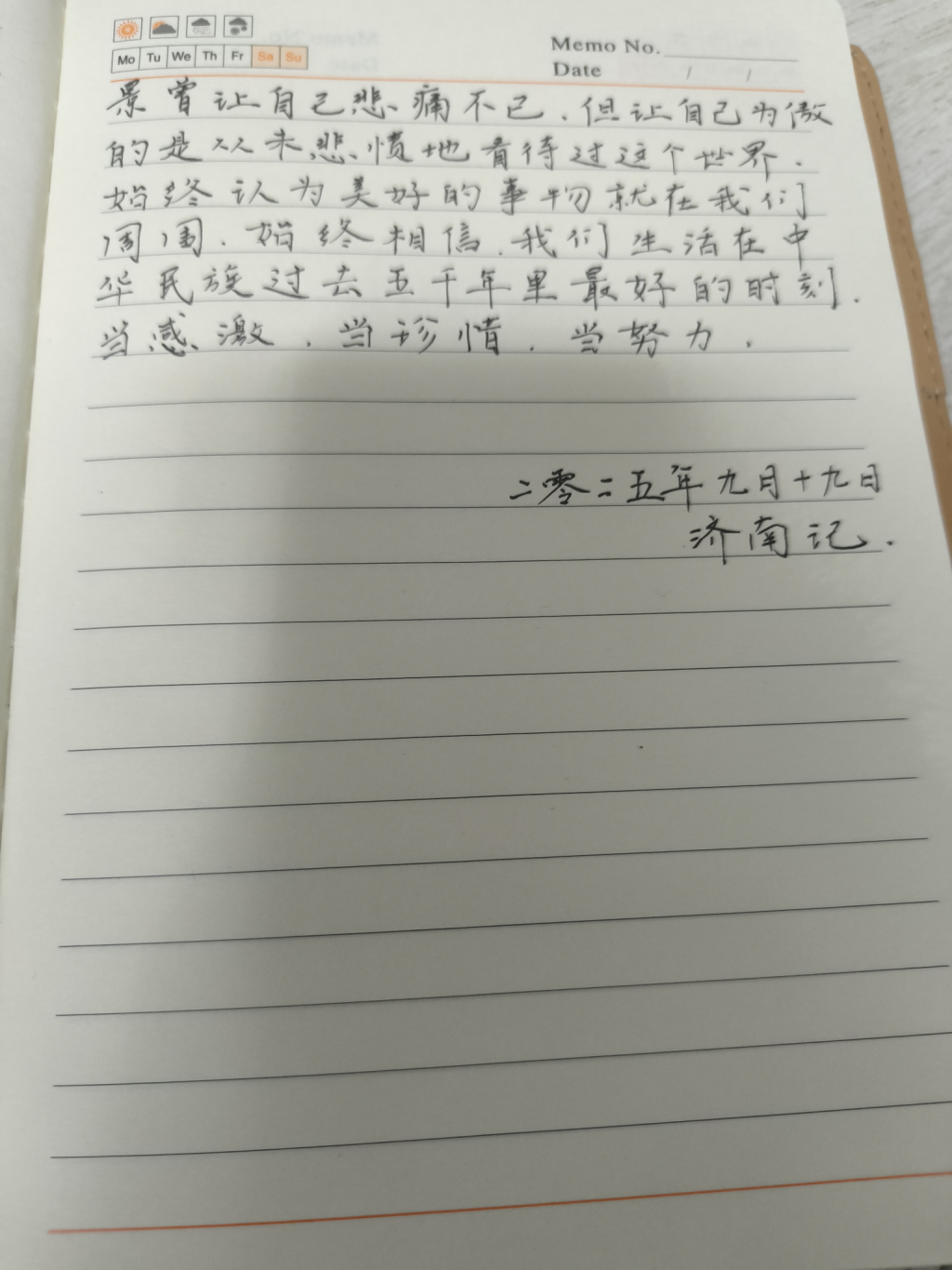 回望过去,如风霜扑面,有太多情景曾让自己悲痛不已,但让自己为傲的是从未悲愤地看待过这个世界,始终认为美好的事物就在我们周围,始终相信,我们生活在中华民族过去五千年里最好的时刻,当感激,当珍惜,当努力。