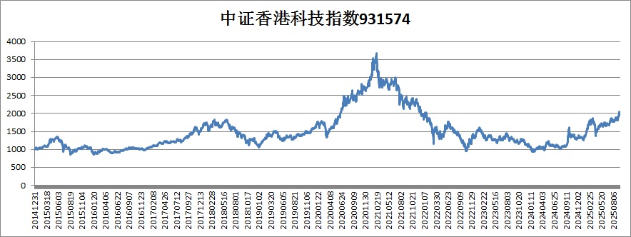 手中有好几只港股指数etf,其中一支为港股通科技,一支为港股通医药。想看看它们的长期走势,可惜这两个指数是中证公司与2021年发起的,没有之前的行情。于是想找出类似的替代。