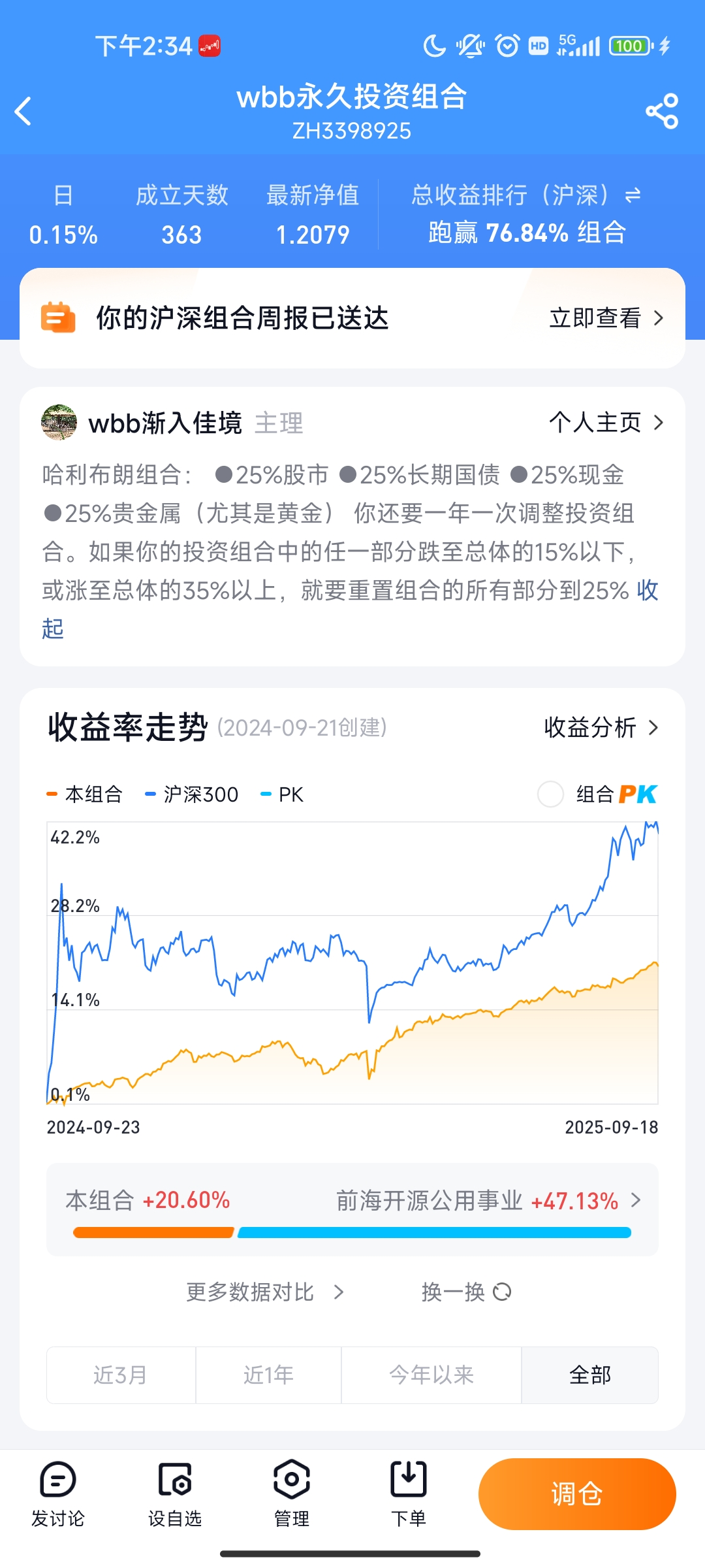 我有个账户是债,黄金,红利,纳斯达克按比例组合配,动态平衡。这几年回撤的确很低,好像最大回撤是2.3%,但我考虑这主要得益于这四个全部都是持续趋势往上的大牛市,没遇到过金融危机那种极端行情。