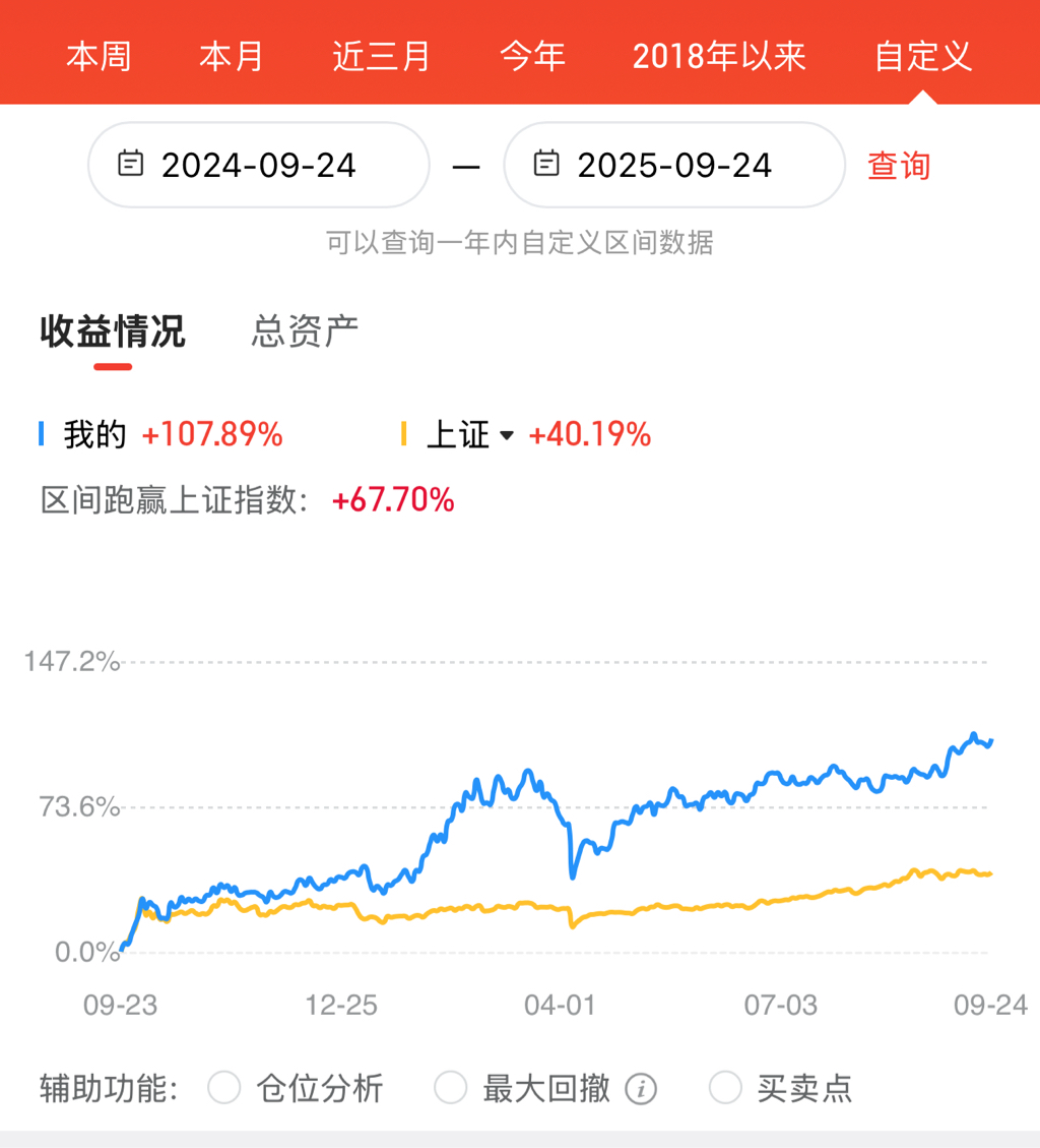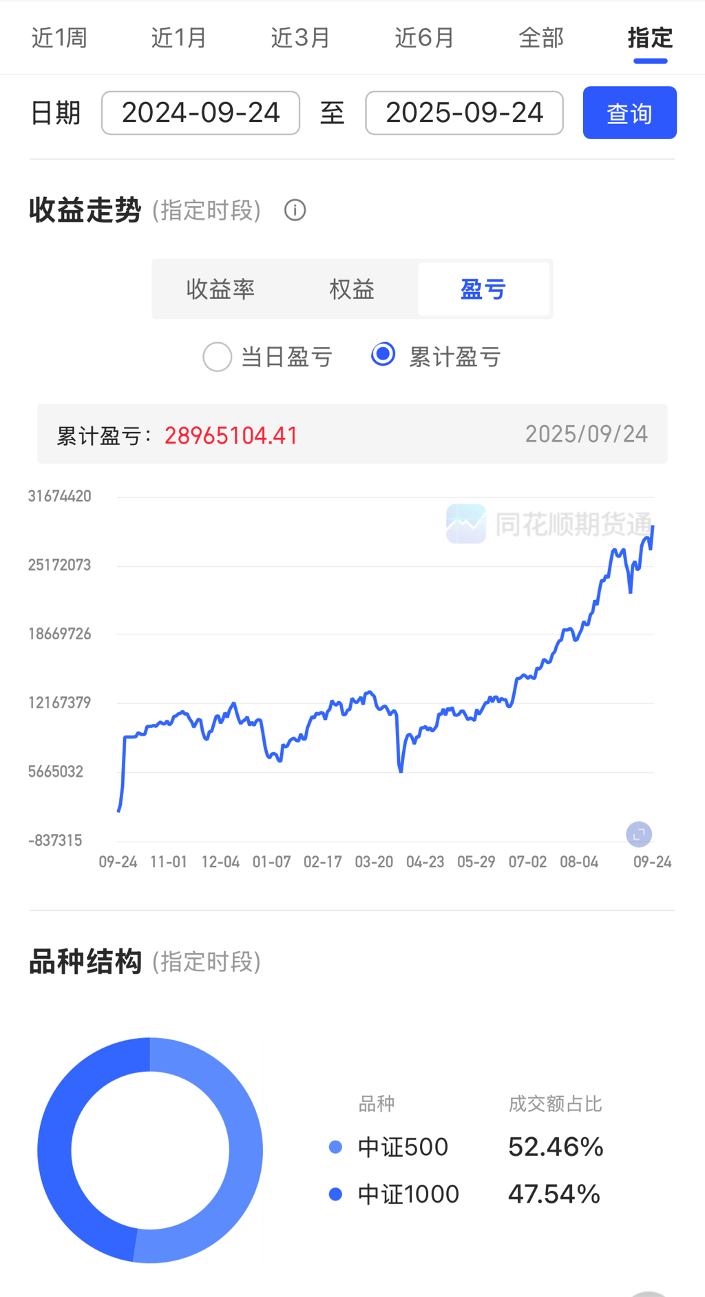 大概从5300万賺到9200万吧,主要大头是期货账户贡献,收益一般略跑赢指数,资产增幅70%+,但是也知足了。