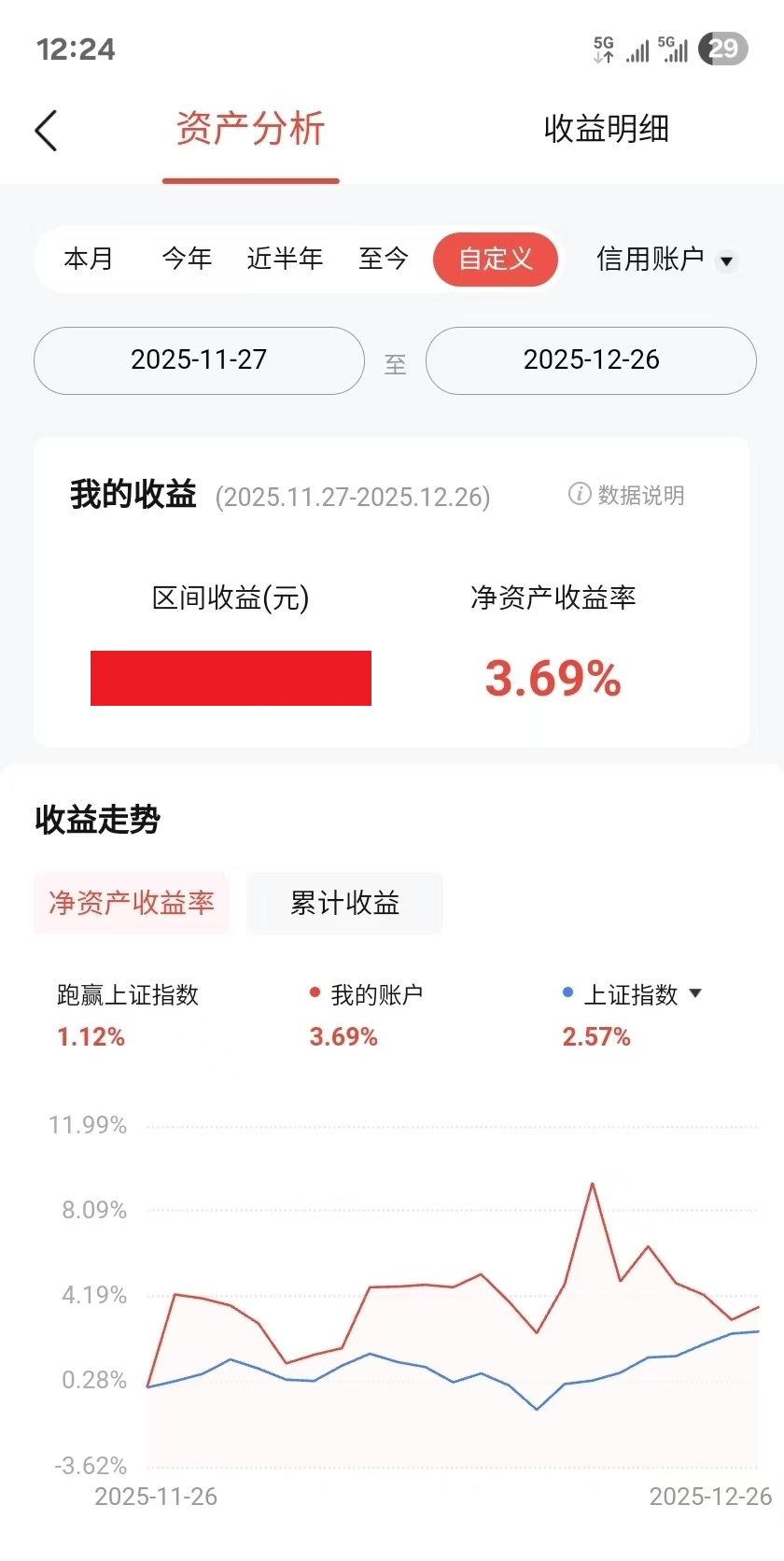 截至2025年12月26日,卖出商铺满1个月,收益率3.69%,跑赢上证指数1.12%。盈利586600*3.69%=21646元,超过1年租金。
