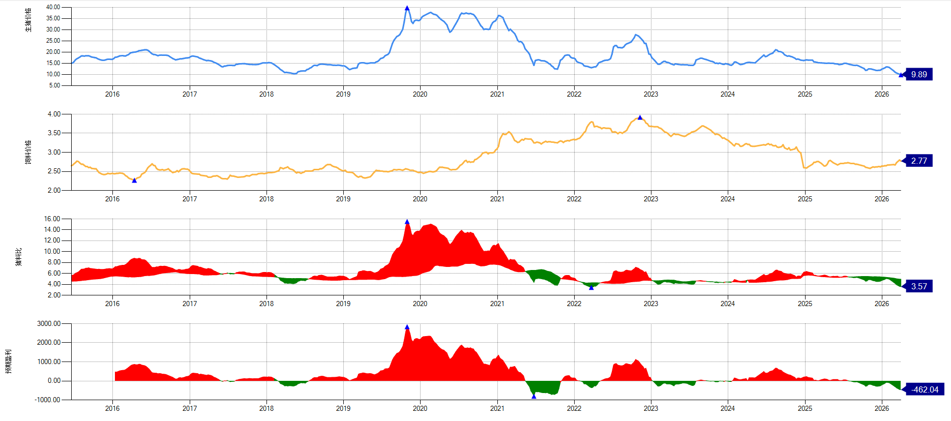是我疯了,还是市场疯了,市场预期116天后猪价仍然会在10.375元/公斤。若跌破10元,继续加仓07我把期货猪肉价格行情讲给父亲听,劝父亲不要喂猪了,父亲还是要喂,目前喂了一头母猪,下了12个猪仔,卖了5个猪仔,剩下7个全自己喂,玉米也是自己种,今天又劝把小猪仔便宜卖了,父亲说大不了亏个人工。