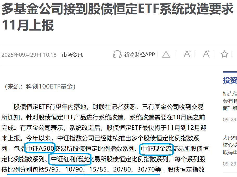 看了个新闻,股债恒定ETF最快将于11月到12月迎来上报
