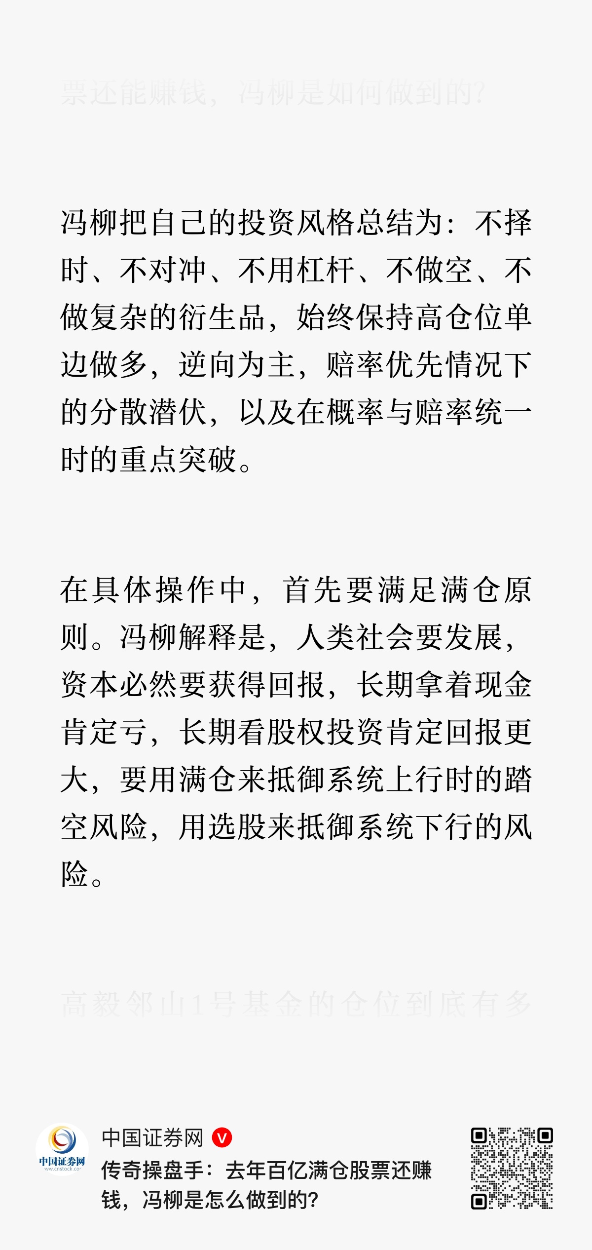 冯柳的弱者体系对绝大部分普通散户还是有很大的参考意义,以下为总结的部分内容: