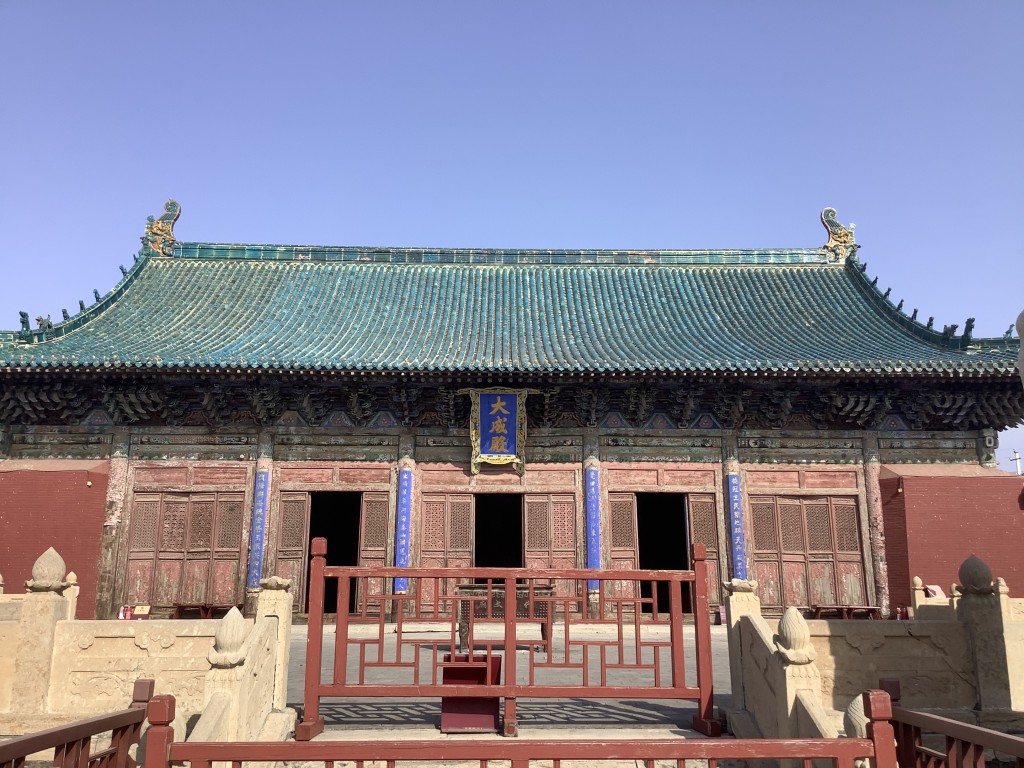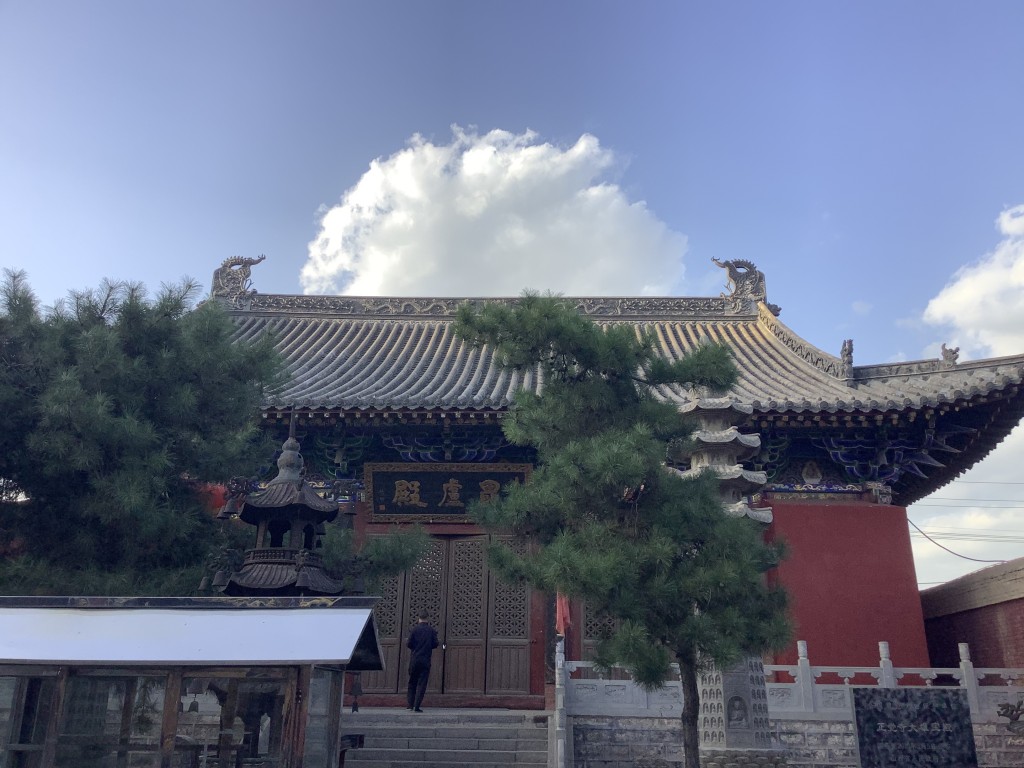 周六走京蔚高速出京。京蔚高速开通时间不长,一路上车很少。如果要在十一长假出京的话,估计是唯一一条不会堵车的高速。下午三点多到了应县。到达应县的时候,在公路上就可以看见著名的应县木塔,可能是现在人各种高楼看多了,远看的时候没有惊艳的感觉。从木塔景区外的人造古商业街看到木塔,甚至有些失望。因为时间不早了,住店之后先去了木塔旁边的净土寺。净土寺虽然没有木塔有名,但留下的大雄宝殿是金代建筑,被梁思成誉为“应县三宝”之一。
