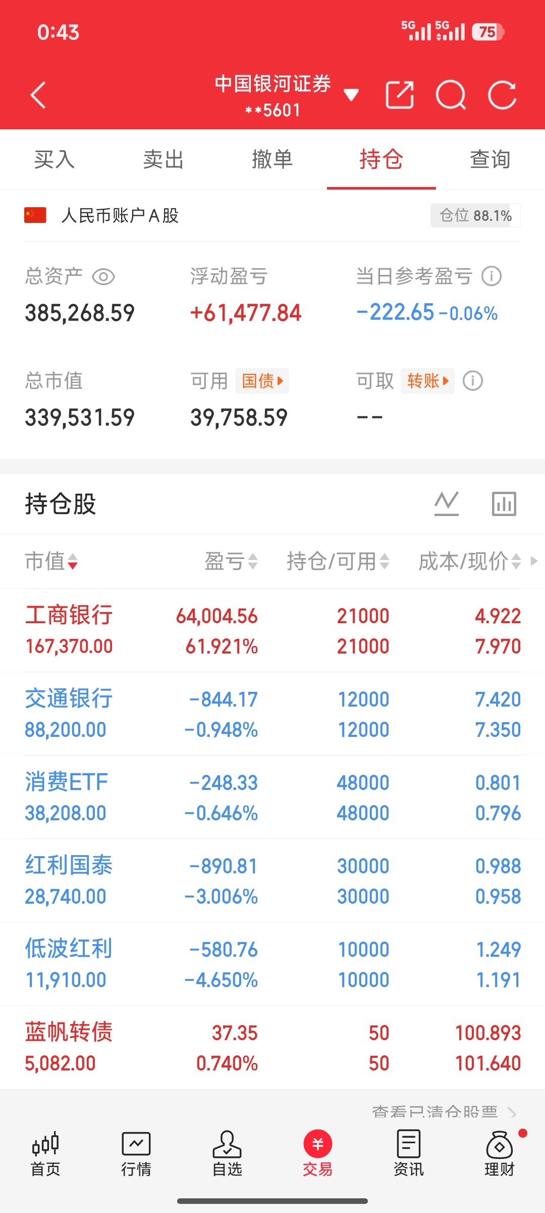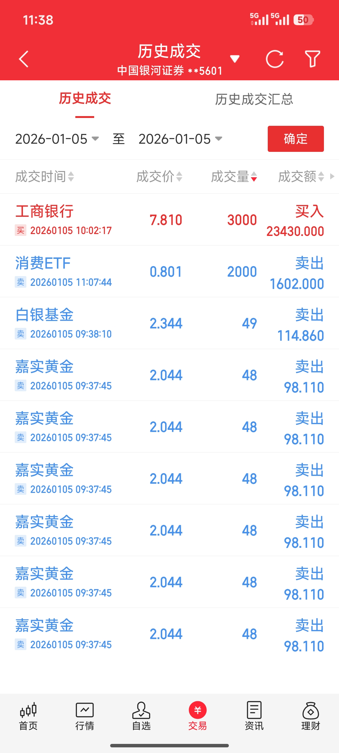 兄台你的账户是免五的嘛?我的不免五。日内做T摩擦成本太高了