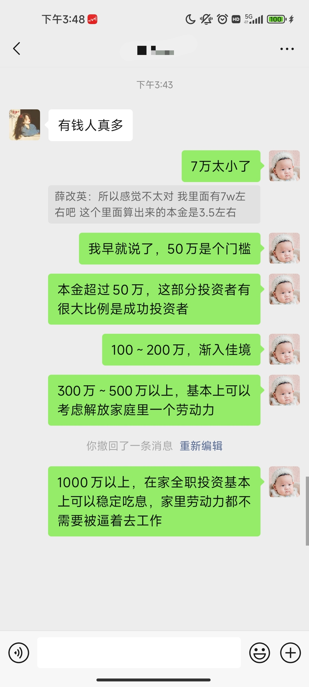 百万以上本金对有些人是太多了,对有些人是不够的。徐3万~百亿。孙15万~30亿。赵10万~10亿。陈30万~2亿。A10万~10亿。9210万~3亿。小鳄14万~3亿。都没有超过10年。还有很多不写了,写的越多越显得自己太笨。。另外如果辞职基本别想结婚的事儿了。以我当年停职期间被相亲对象问最多的是如果不工作,你以啥为生,我想的是嫁汉嫁汉穿衣吃饭,别人想的是年轻美貌自带饭票,若无饭票玩玩就好。当年...
