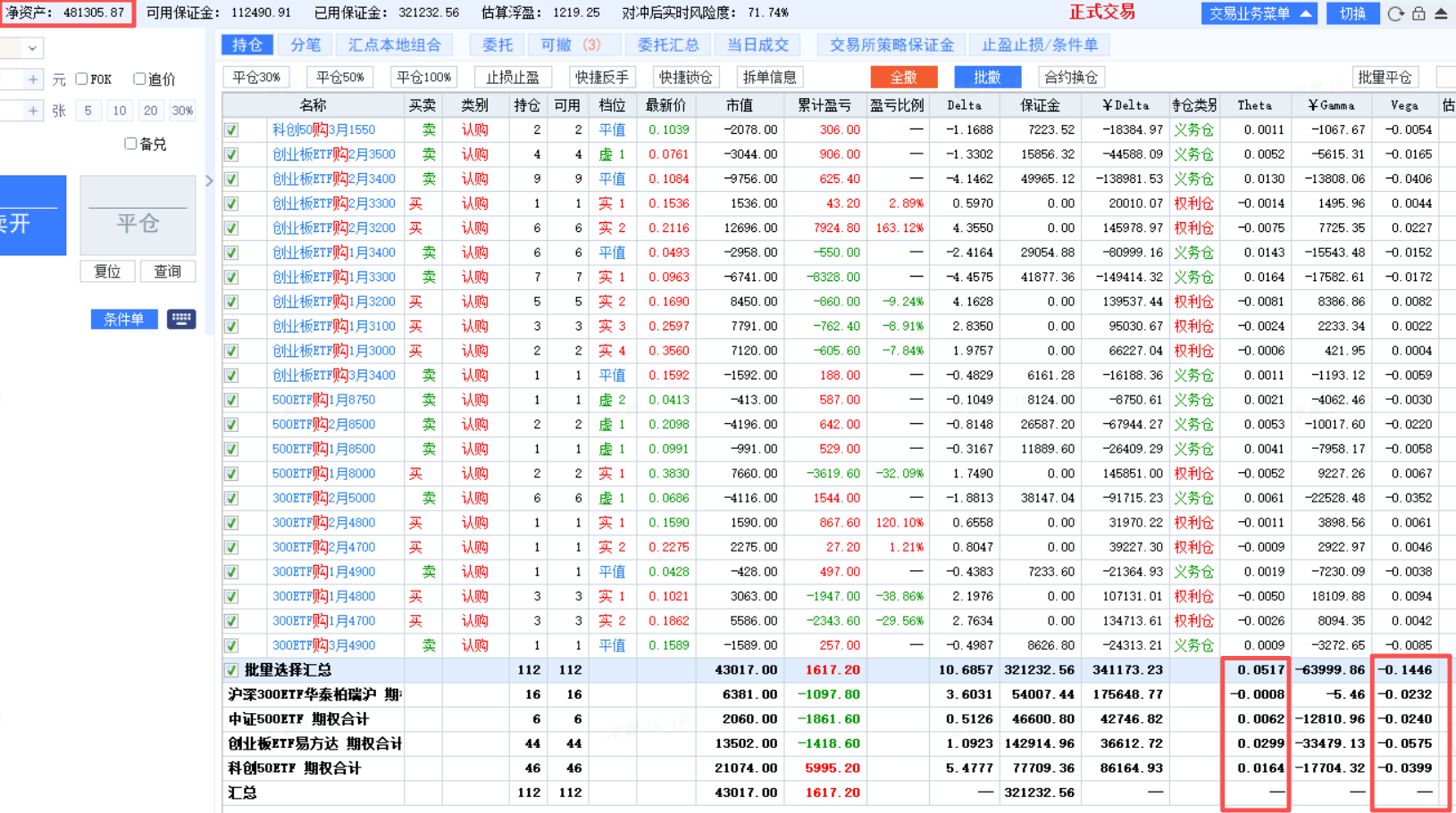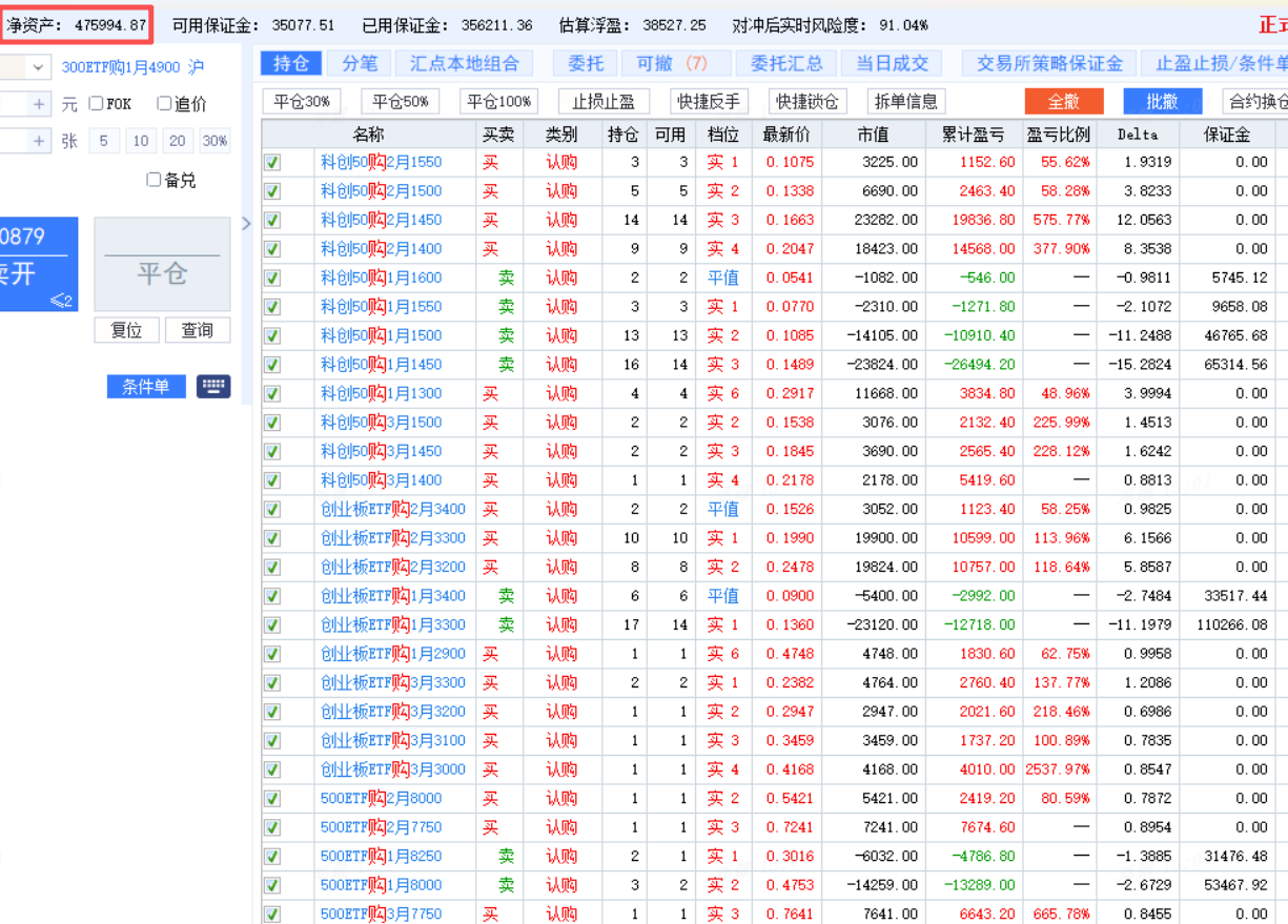 - 今天我的偏多认购日历价差,早上半小时,收益大涨6K。之后指数再涨,发现奇怪的现象,整体净资产不再涨了,反而有微微跌的感觉。其实是双创的日历价差组合,不赚反亏了。