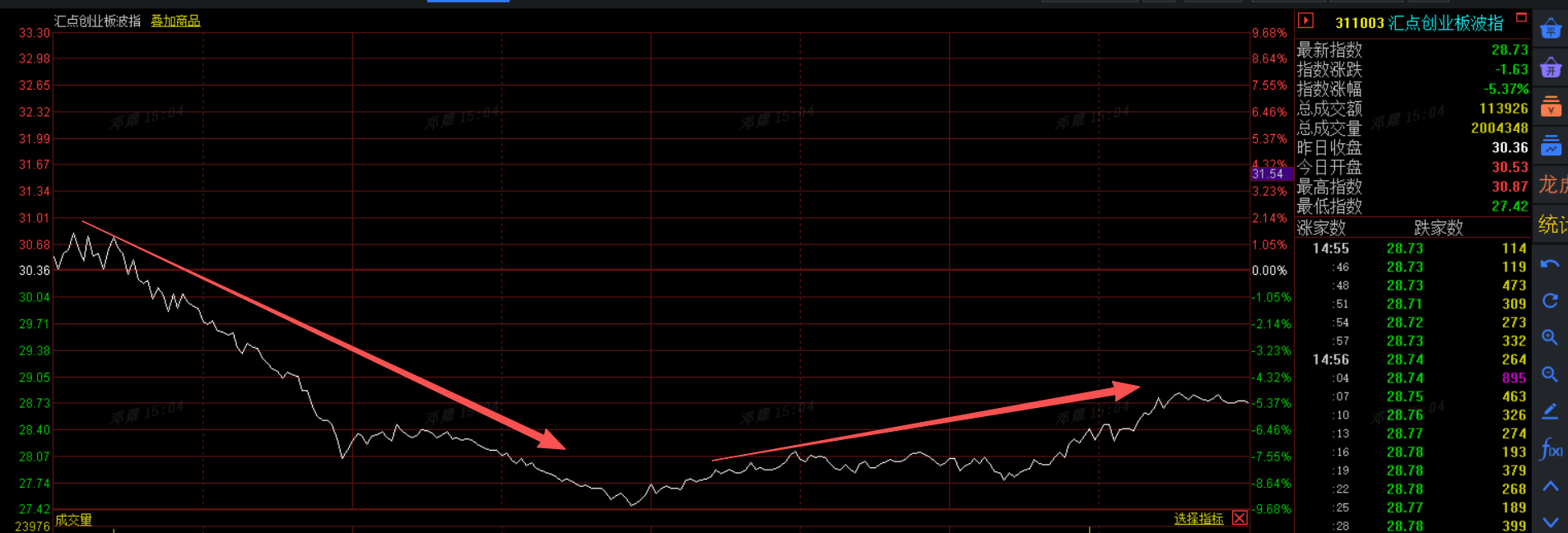 今天指数大跌,看到沪深300、创业板的近波,也开始跟远波差不多了。太难了,这个发疯的市场。