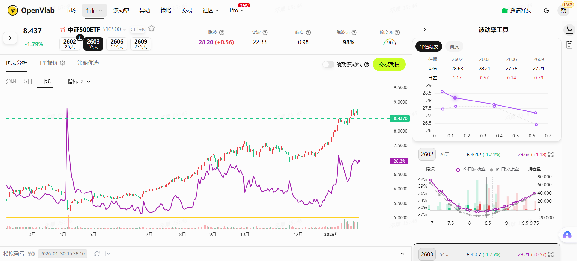 --------------------------- 今天指数终于开始震荡了,不过我的偏多认购日历价差,还是赚的,半天大约2K。- - 我思考了很久,可以把我上面的策略用一个更合适的名词:- 1、低波+大趋势看涨,买远月虚购,卖当月更虚购,等大涨升波让远月腿大赚,让近月腿因为时间去归零。这个组合,不涨也能赚一点点时间价值损耗差,涨就更好了,可以死等行情,这个就叫 虚虚偏多对角价差。- 2、高波...很多东西有历史局限性,时间回到2021年一路下来三年能不能经受考验。