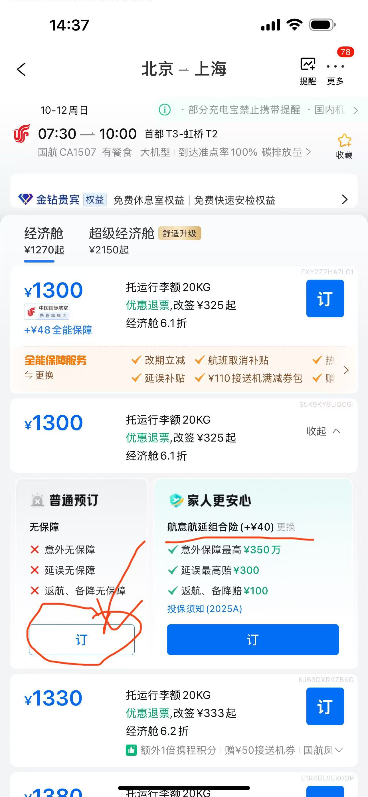 携程,去哪儿等第三方,现在都默认附加保险,都先要去航空官网或12306看好实际票价,再去第三方下单,心里有数才能发现隐藏猫腻。