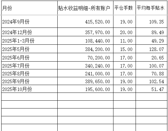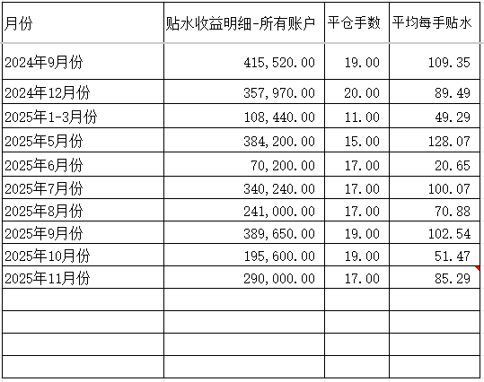 月份 贴水收益明细 平仓手数 平均每手贴水