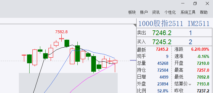 新开仓1手IM2511合约,开仓价7122.8;指数价格7238.5