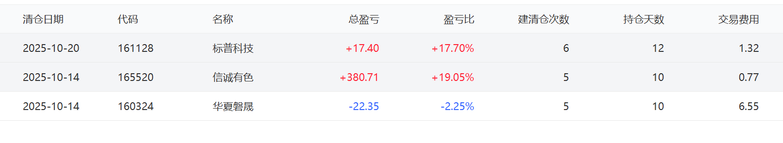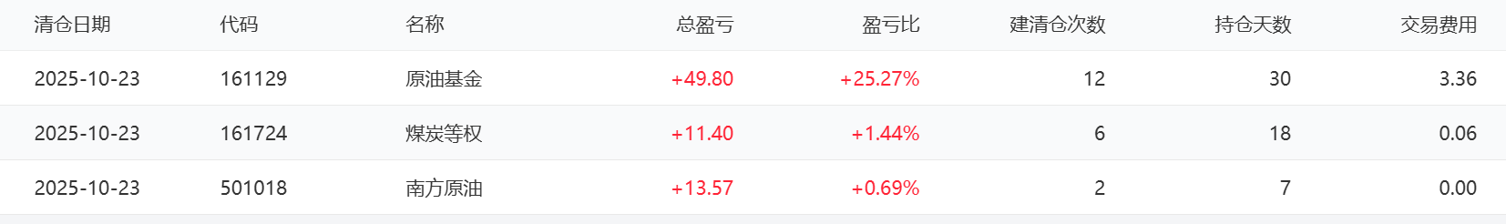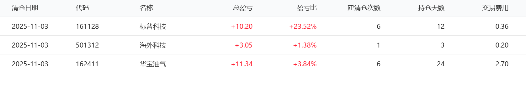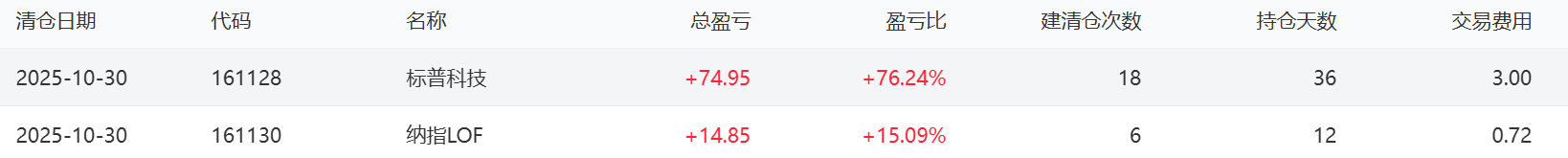 华宝油气+22.56;标普科技+19.2 总盈利708.76元