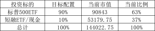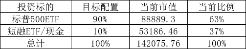 4.现金流规划:每月最后一个交易日投入增量资金,按9:1的比例分别投入标普500ETF与短融ETF/现金。