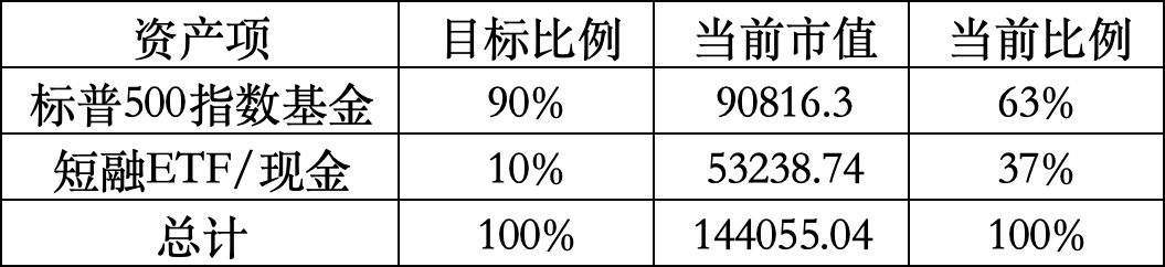 4.现金流规划:每月最后一个交易日投入增量资金,按9:1的比例分别投入标普500ETF与债基/货基。