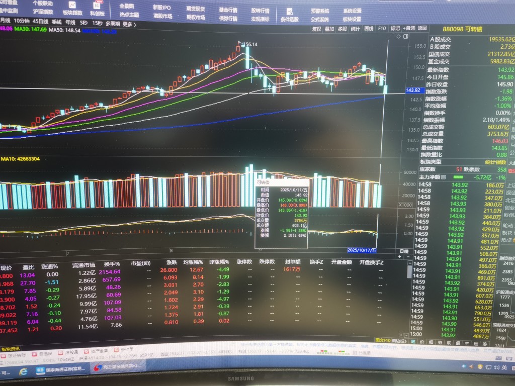 昨日平开低走,一路东南,大幅下跌,转债指数高位,转债情绪温度保持较高位,今日计划 有T做T 保持仓位;景兴 最后交易日 中辰 鹿山 最后转股日 必贝特【新股申购】锦浪转02:10月17日申购 建龙 不下修 精达 晓鸣 顺博 航新 减持股份 转股信息:浦发 转股15.6亿 升24 转股4.2亿 恒邦 转股2.2亿 新23 转股1.23亿 长集 转股1亿 纽泰 转股4.7千万 恩捷 转股3.4千万 中金 转股3.1千万 晨丰 转股2.4千万 富仕 鹰19 转股1.8千万 优彩 蒙泰 转股1.5千万 洛凯 转股1.3千万 今日 恒邦 盟升 最快差一天满足可能强赎, 今日 宏图 美诺 鸿路 最快差一天满足可能触发下修。