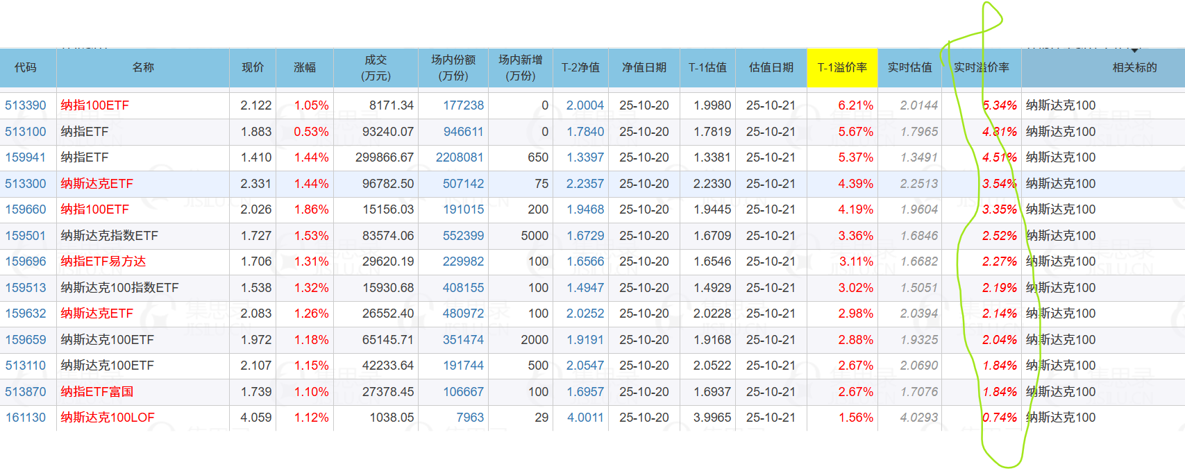 纳指还在新高状态也没跌,为何场内纳指etf又溢价了?