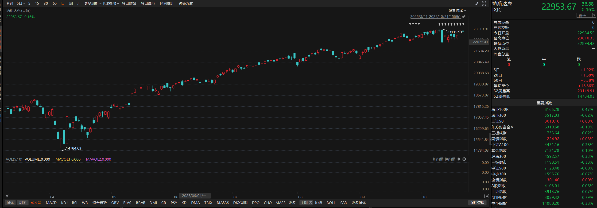 易中天和纪连海后没有新的热点,市场成交量萎缩。7-9月追涨a股的又回去买纳指了