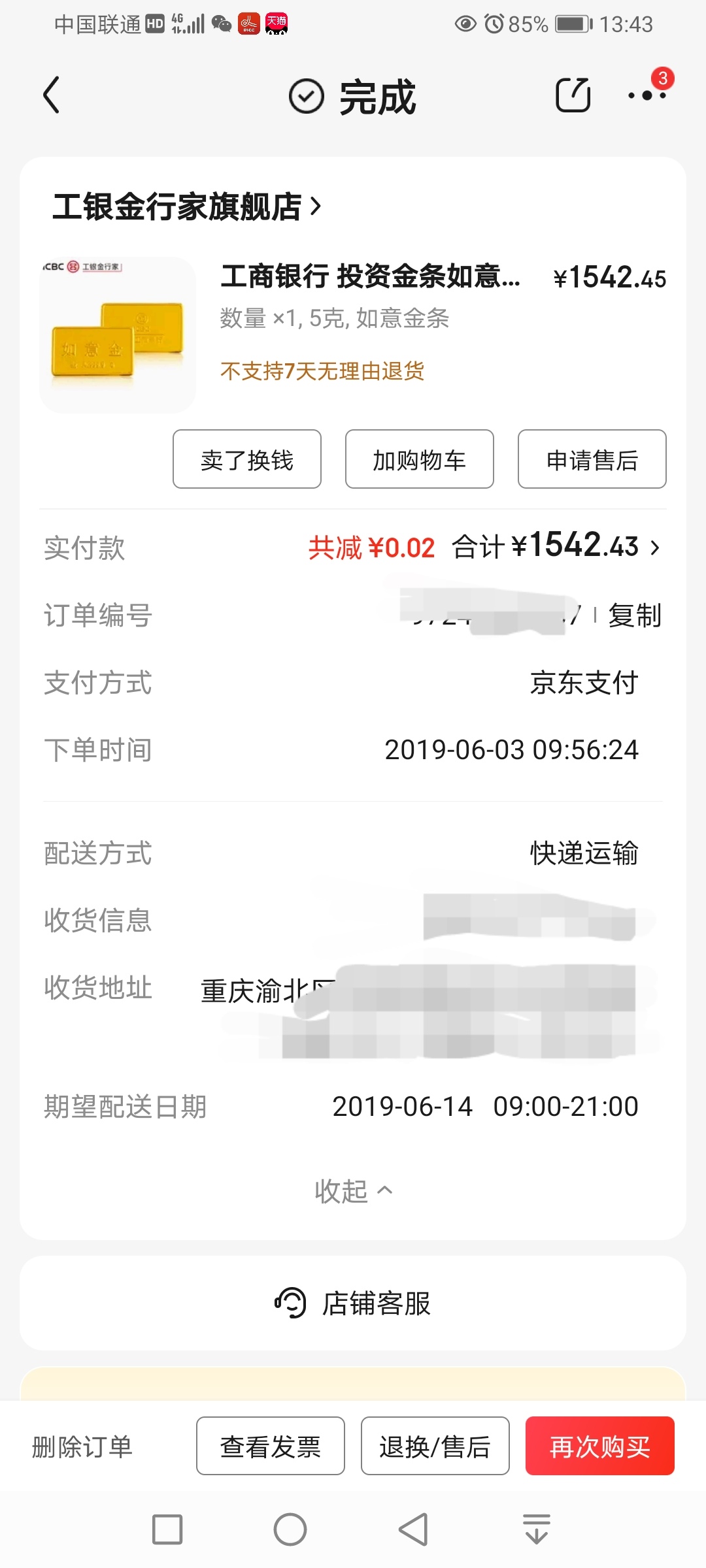 谢谢提醒!17年双十一花2500买了8.8克黄金!收率4倍