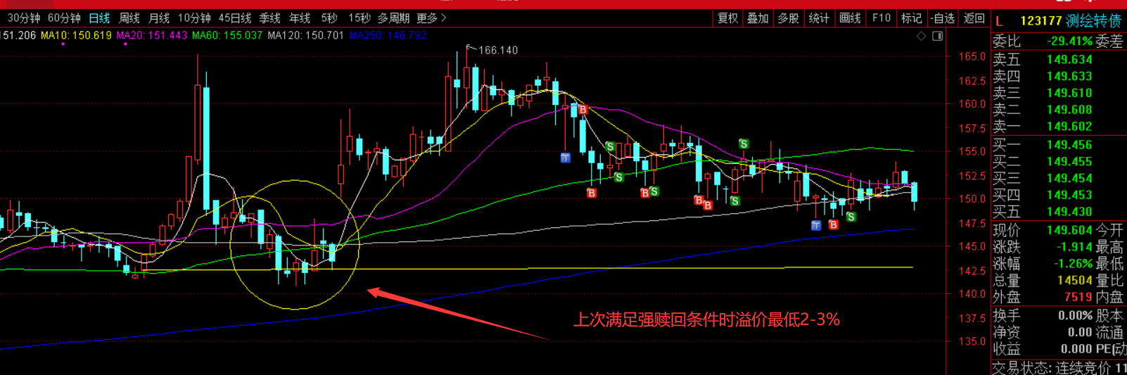 测绘转债明日强赎回博弈日,今日下午开盘放大量拉升,怀疑主力资金提前知晓不强赎回了。