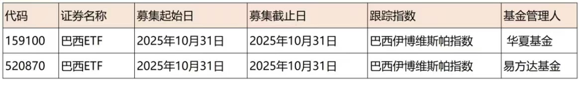 有老师提供信息,10月31日有两只巴西ETF认购