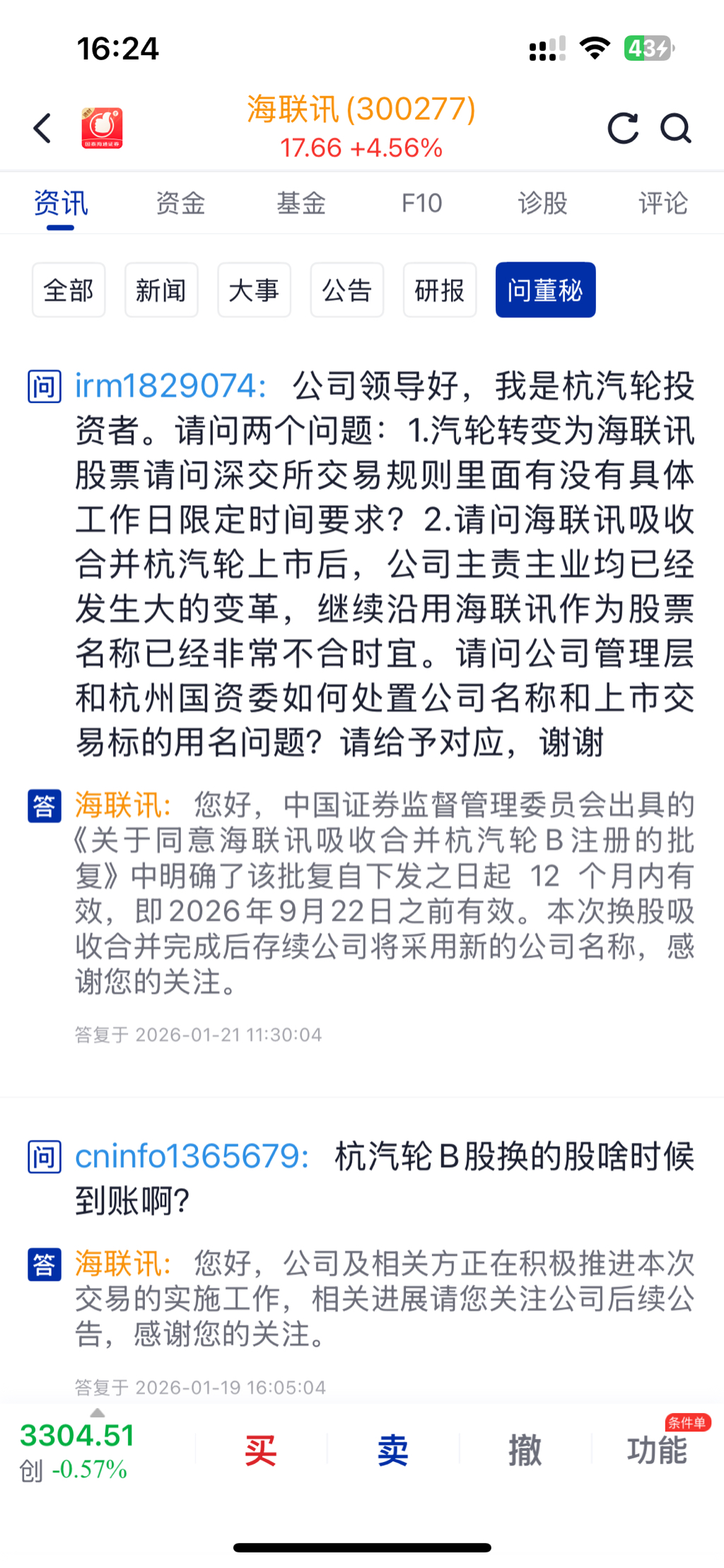 预计海联讯先复牌,换股后的杭汽轮再到账户(不确定)