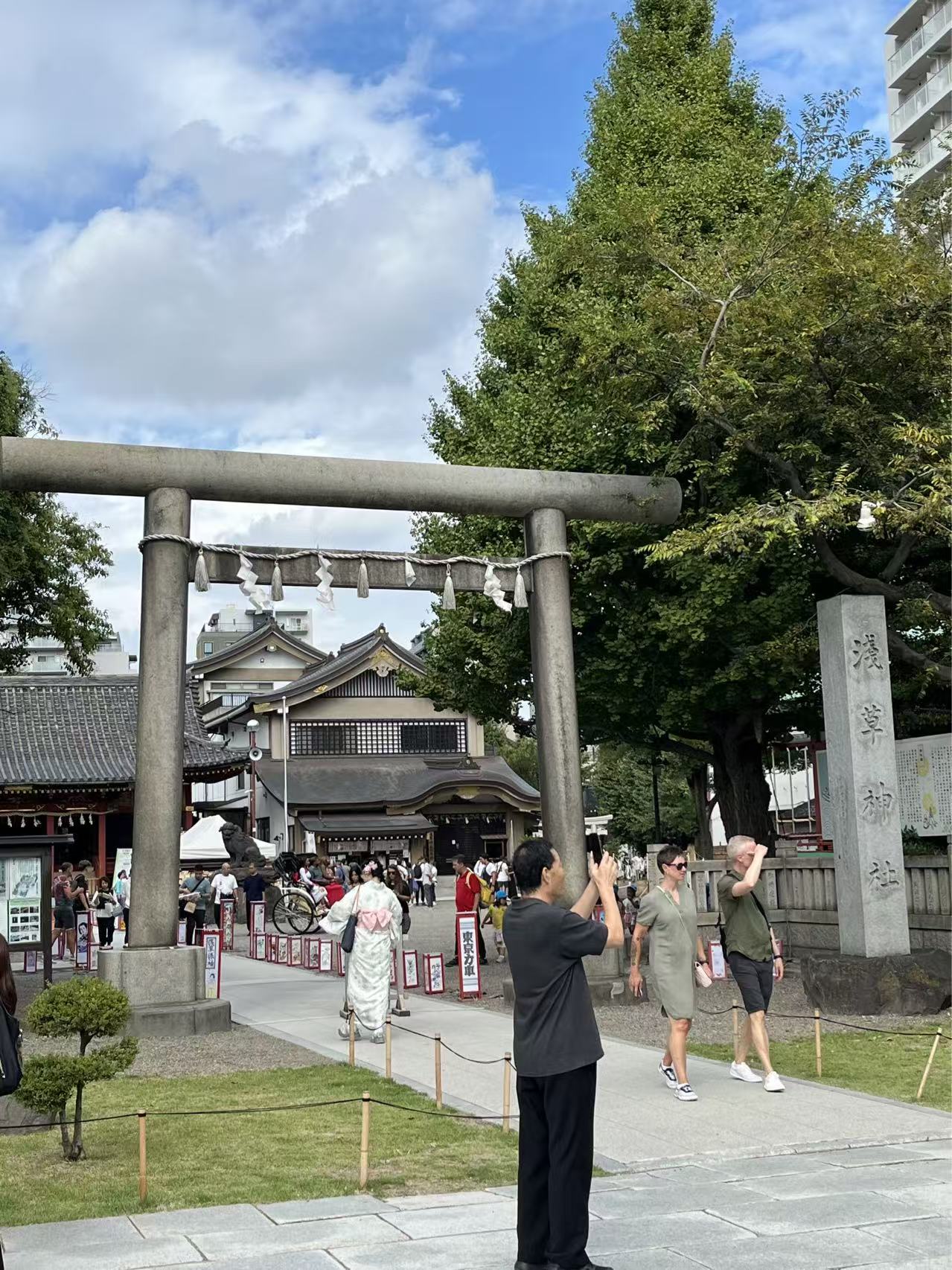 后来跟导游聊了聊神社,其实神社在日本是非常普通正常的宗教场所,日本总共有8万多家神社,而且神社基本都是私人所有。日本的神社就是日本神道教的场所,供奉日本的本地神,其实跟我们道教场所类似,不一样的是,日本神道教的神没有具体的形象,更有没有雕塑,也就是说神没有具象化。当然,有的神社也供奉牛人,比如明治神宫就供奉明治天皇和皇后。神宫和神社的性质一样,不过神宫是皇家寺庙,神社是普通寺庙。