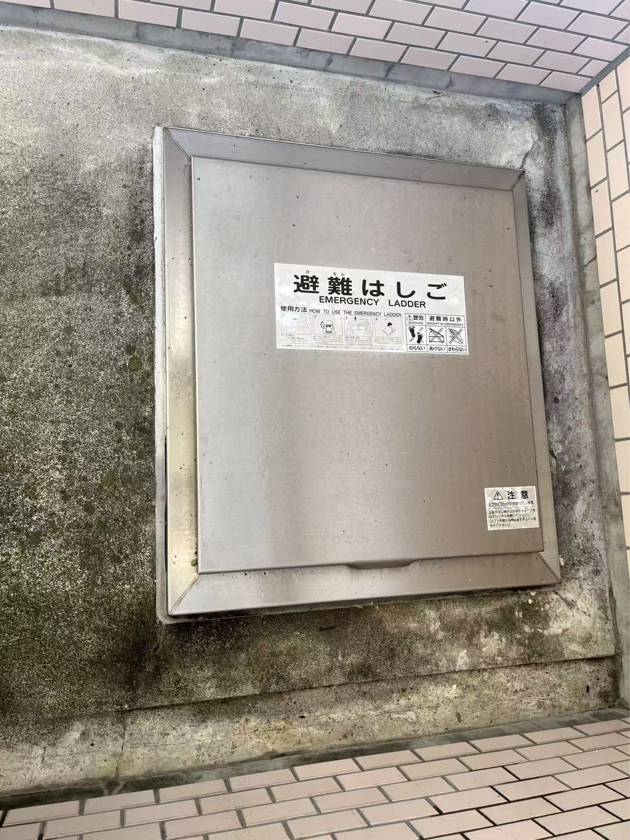 日本因为地震频发,不管是一户建还是高层,全部设置了逃生通道,可以从高层打开逃生通道一层层下来,这点特别好,下面这张是我在日本富士山的酒店里拍的逃生通道,打开上面的铁盖之后,下面有梯子可以拉开逃生到下一层,然后依次类推。