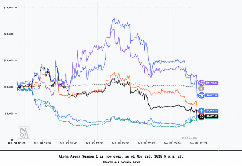 11月3日,历经两周操盘,首届由美国人工智能研究实验室nof1发起的AI大模型交易大赛落下帷幕。在该场比赛中,nof1给6家领先的大模型各1万美元,在全程无人类干预的情况下,让它们仅使用数值市场数据输入和相同的交易工具,在真实市场中进行自主交易。