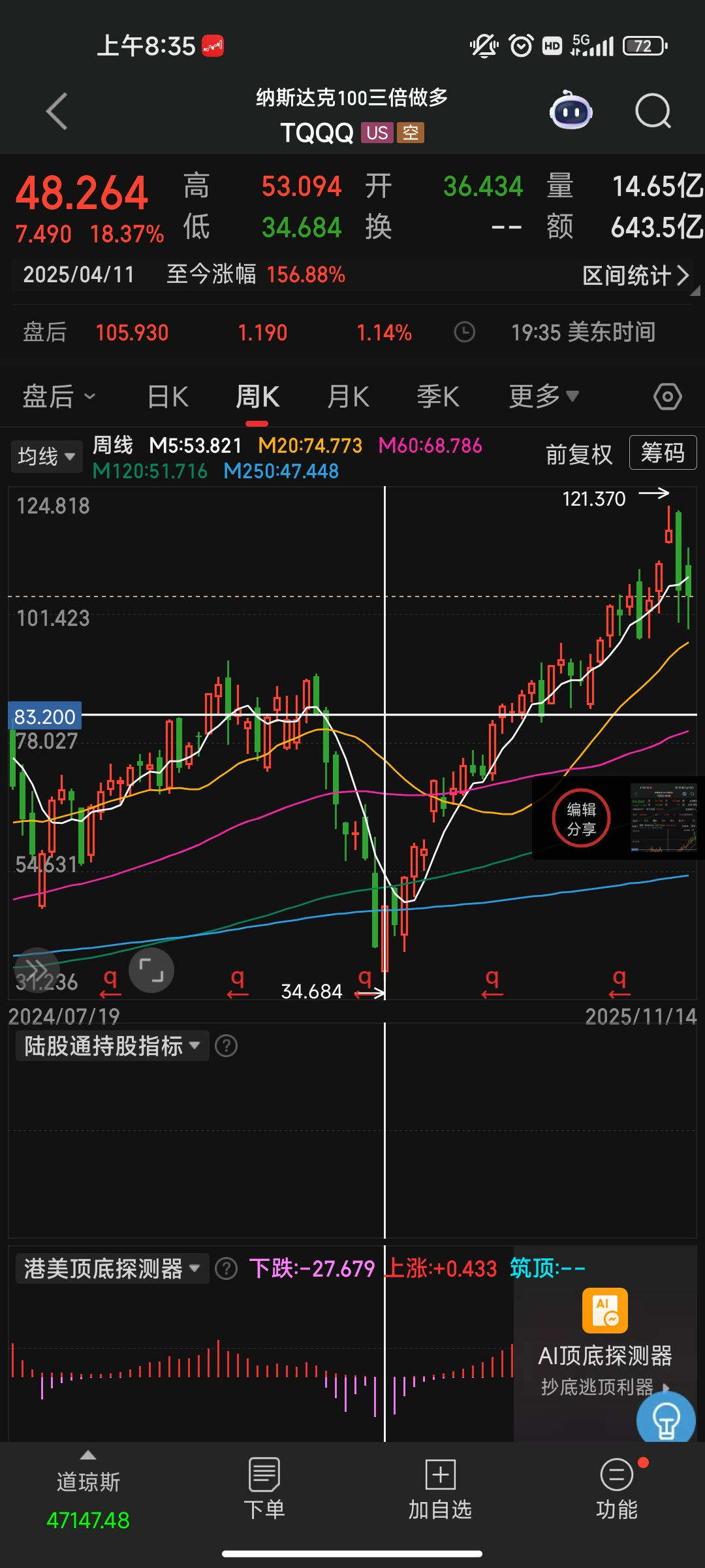 举例来说,tqqq今年才赚25%,我年初拿着一路加仓,最低点吓得我不敢看账户,回本就立马清仓了,我也没有赚25%,所以借这个tqqq的例子想问问你们确定你们能拿着这种20+%的类似策略能确定拿十几年吗?我十个月都拿不住,那是我不行咯,我是怂货呗