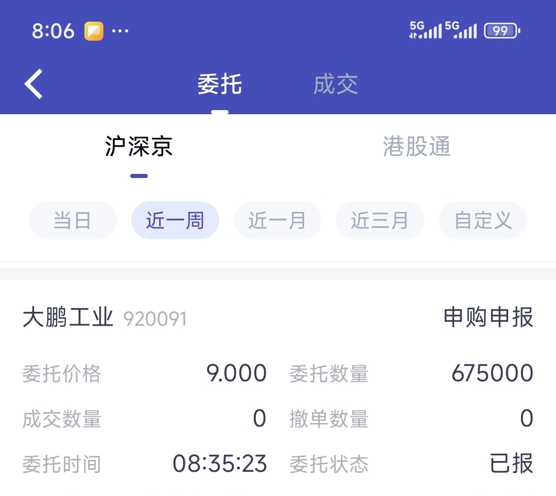 银河证券,还我100股大鹏工业,我8点35分申购的,竟然只中100。