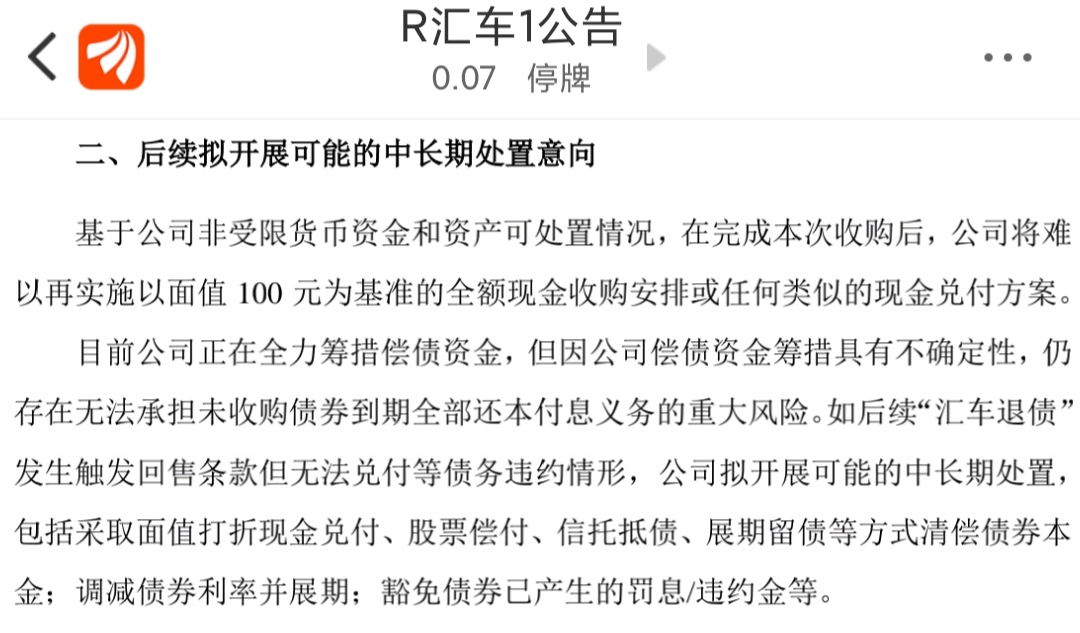 [临时公告]R汇车1:关于“汇车退债”线下参与本次收购意愿申报的公告