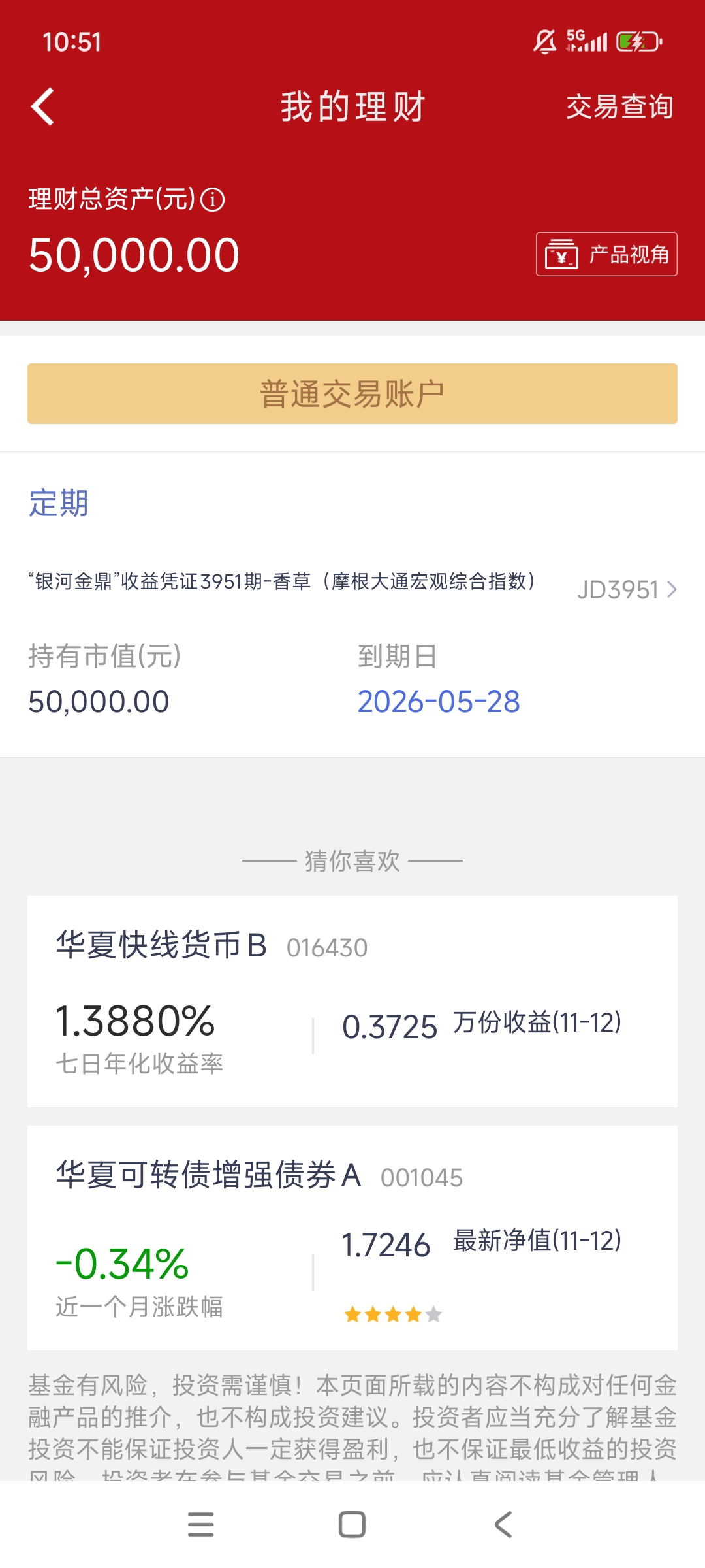 我也有这个摩根香草三年期,明年7月到期,当时也上了15%的仓位,想着较差也会有5%单年息,结果***,大幅拉低投资收益率,现在不看银河的什么鸟组合了。