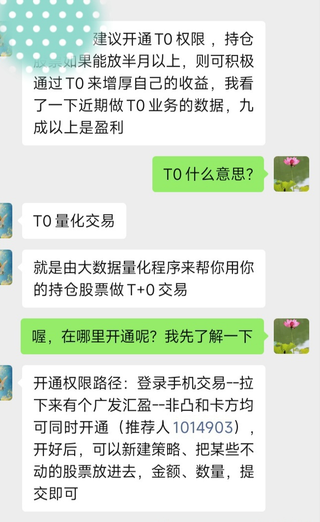 广发客服经理推荐开通汇盈量化T0交易,各位大神用过没有呢?