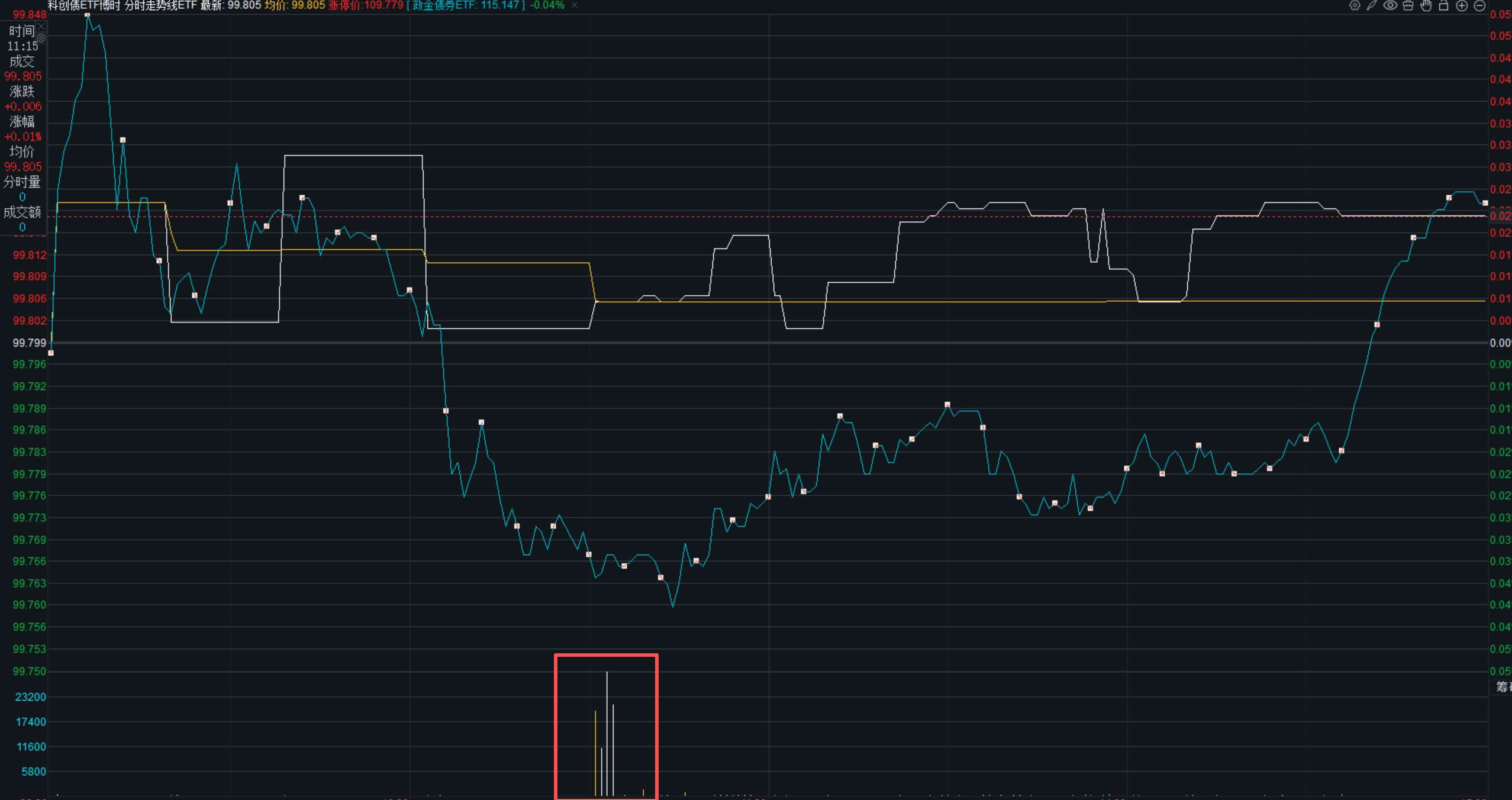 就是很多ETF都会在每天的某一个时间,大约是10分钟以内有一个极端的大量成交,且成交是整数笔数