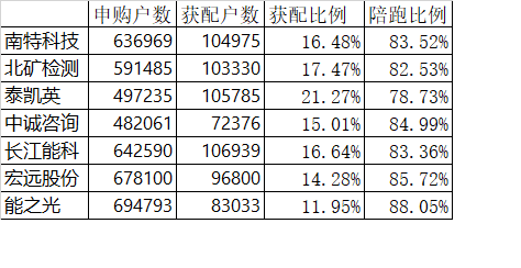 账户占比高,资金量占比不大,从公布中签率和实际中签率倒推,陪跑资金占比约20%一个新股如果门槛300w的话,那么250-300w的申购其实是理性的,这部分可能占陪跑资金一半吧。所以真实的毫无胜算的资金量也就10%左右。