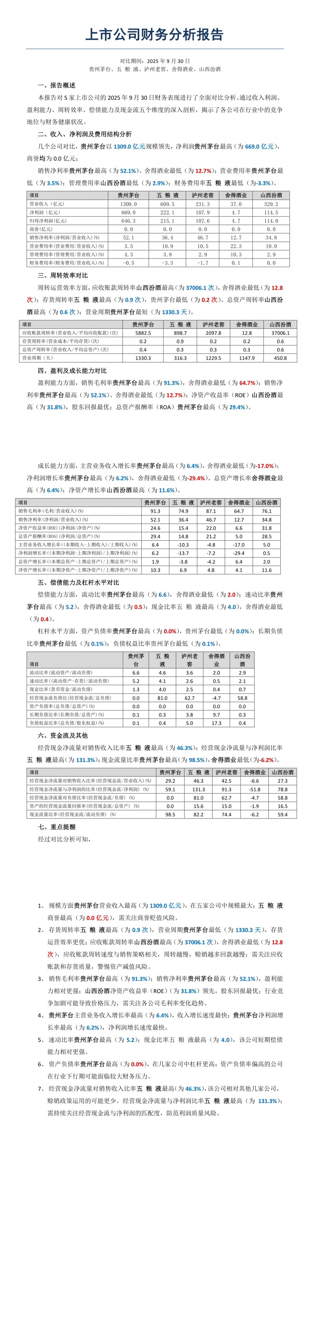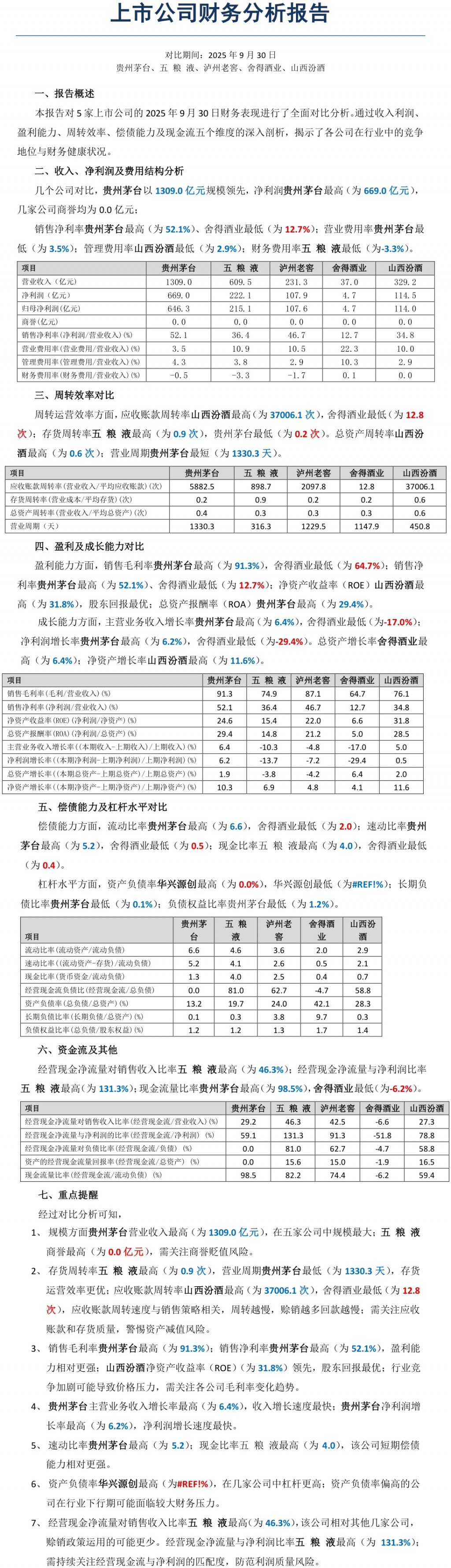 上市公司财务年报数据对比(茅台、五粮液、泸州老窖等等)