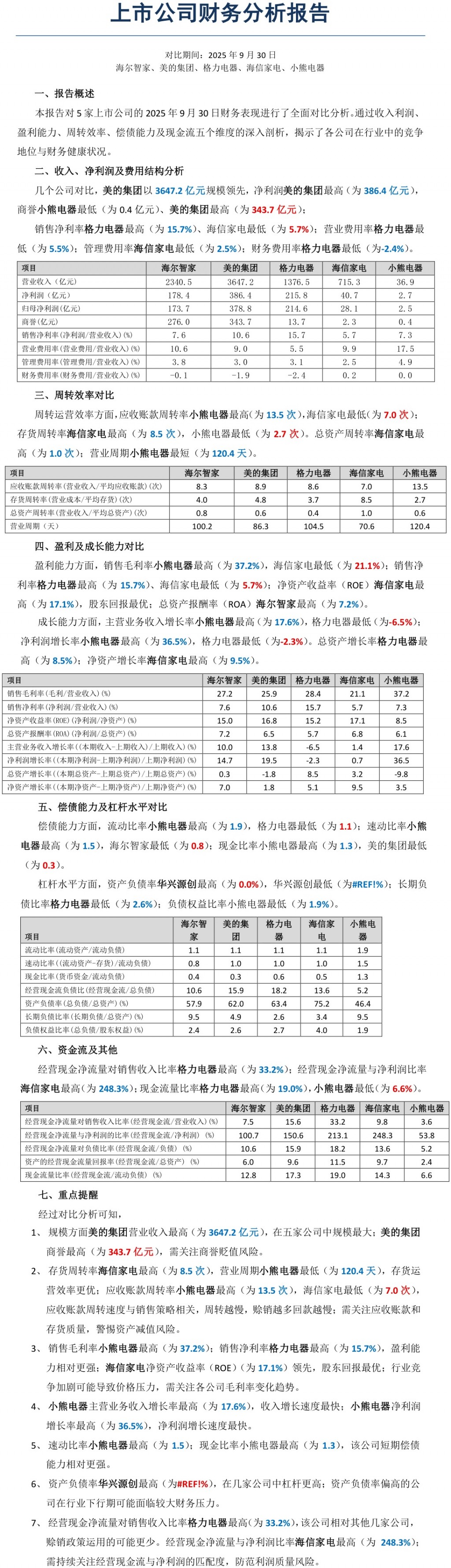 海尔智家、美的集团、格力电器、海信家电、小熊电器