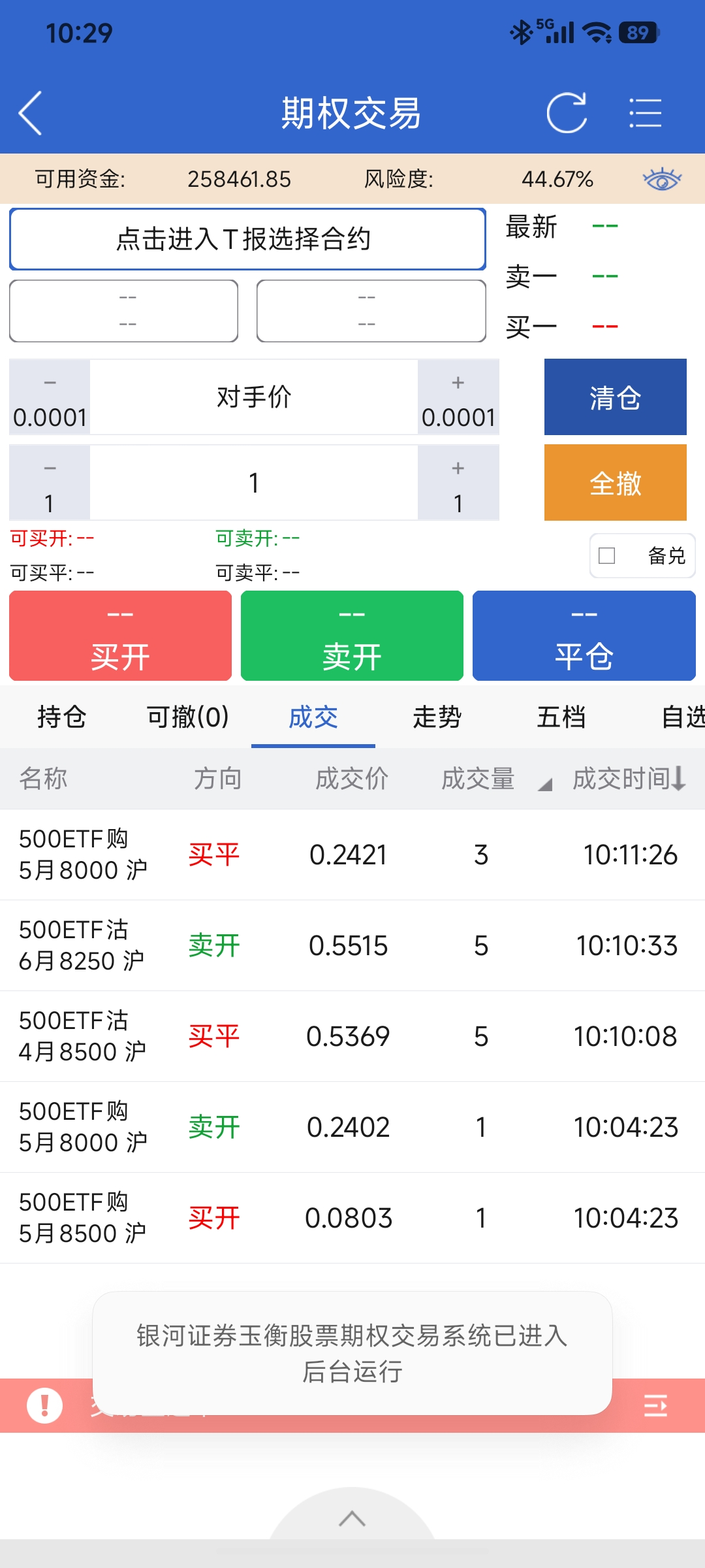 前几天行权,出掉了3.2接的货。11月接货一月出。赚了几个月的权利进。本来准备筹集资金硬抗500继续涨的,所以就没再开仓,反而躲过了今天的大跌!
