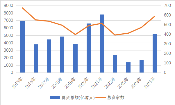 今年来港股募资总额已超过5200亿港元, 募资家数587家,仅次于2015年。
