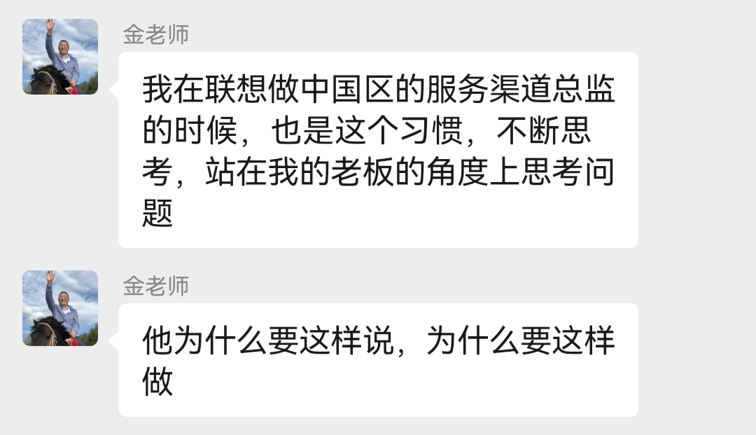 我们在日常聊天中习惯性用好的/收到这两个字来回复,这两个字一出来思路就停止了,对话就终结了。以后,当我们想说好的或者收到的时候,我应该多问一句还有没有信息要问,要多问一个问题,这样的话才会强制让自己去把事情跟对方搞清楚。