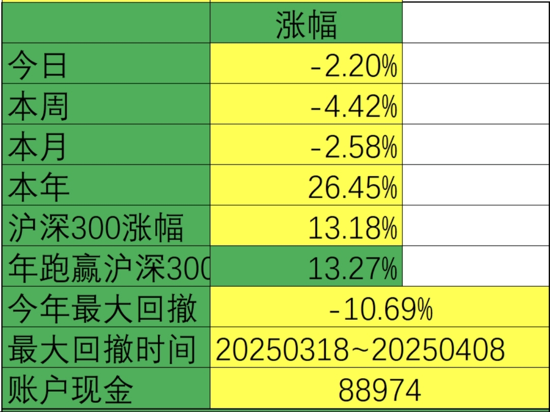这周是挺惨的。除了周三的勉强红0.13%,其他四天都是大绿,周五更是-2.23%的大跌。