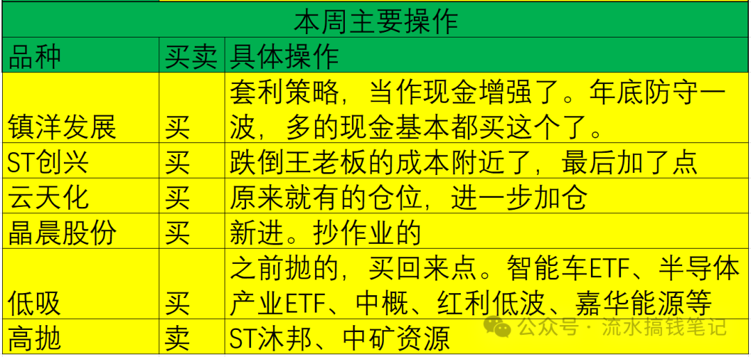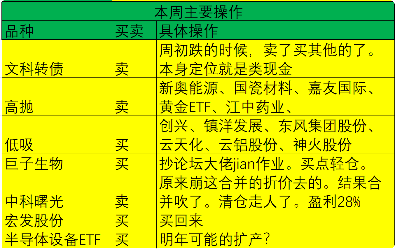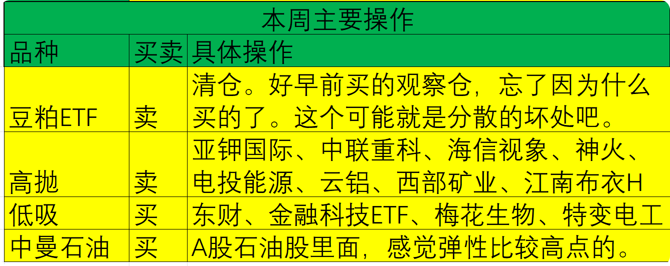 本周操作不多,基本就是持仓中简单的一些高抛低吸,胡乱操作一下,过过手瘾。