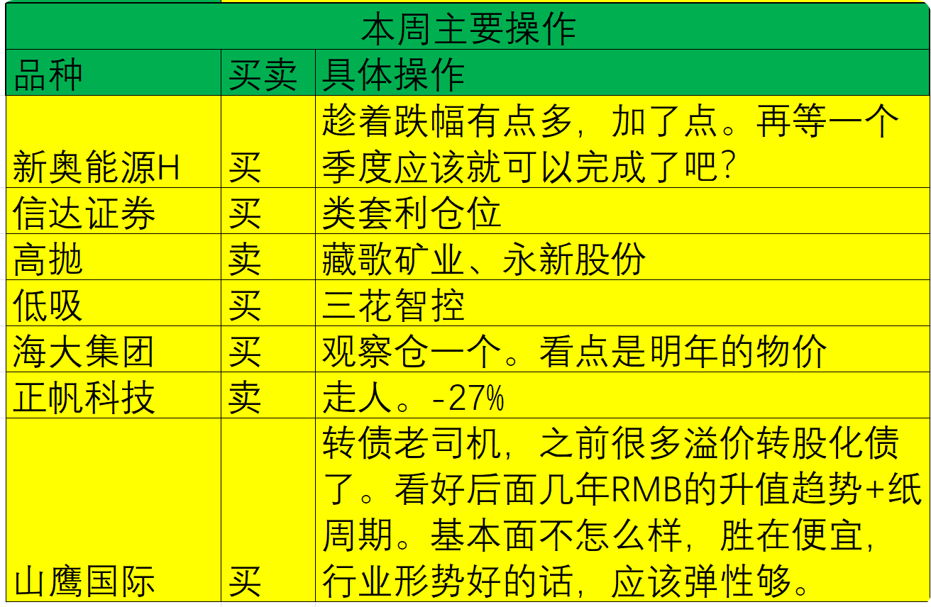 这周我仓位上来了,但其实本周我是净卖出的。仓位上来,是因为抵押品下跌了。如果继续下跌,我会卖出一些类现金仓位来进行调仓,比如文科转债之类的。